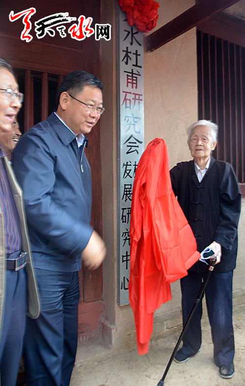 ▲副市长张建杰、天水杜甫研究会会长桐树苞为杜甫文化产业发展研究中心揭牌