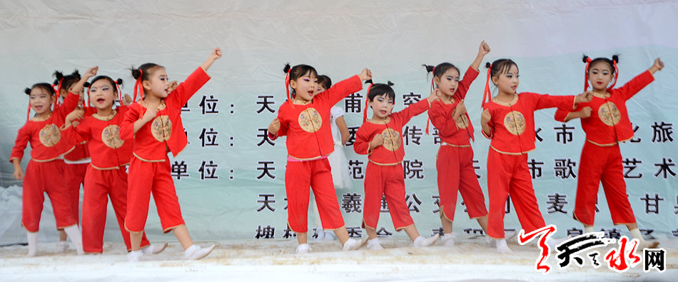 ▲街子明天幼儿园幼儿表演民谣《九股松、八股槐》