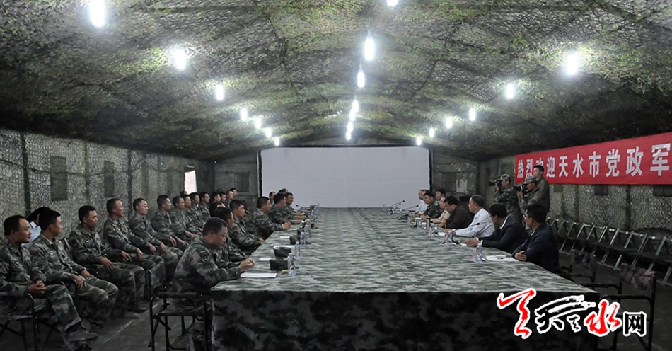 在外训部队营地,市党政军慰问团向部队官兵送上了带去的花牛苹果等慰问品,并与部队官兵进行了座谈,详细了解他们的吃住条件和训练目标、训练成果等情况。王锐指出,天水是68202部队的第二故乡。近年来,全市各级党政军组织紧贴强国强军的时代要求,顺应国家军队改革发展大势,深入扎实开展创建活动,有力推动了双拥工作创新发展,走出了一条具有天水特色的军民融合深度发展的路子。68202部队作为驻军部队的主要军事力量,充分发挥信念坚定的示范作用、强市富民的骨干作用、急难险重任务的突击作用、维护社会稳定的卫士作用和精神文明建设的带头作用,成为天水军民融合深度发展的践行者和示范者。特别是今年我市再次荣获全国双拥模范城称号,如期实现了双拥模范城“五连冠”目标。这是全市党政军民共同的政治荣誉,这些成绩的取得与68202部队官兵的积极参与和大力支持是分不开的。