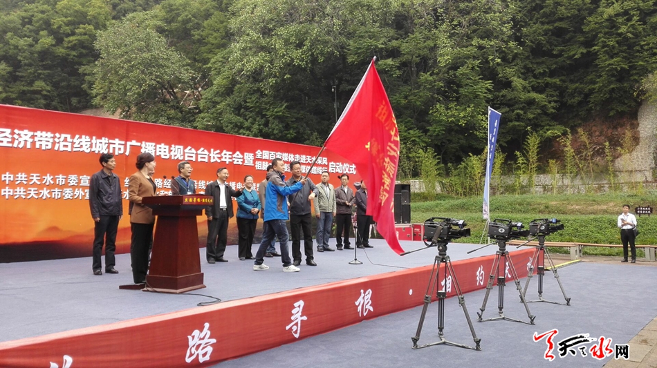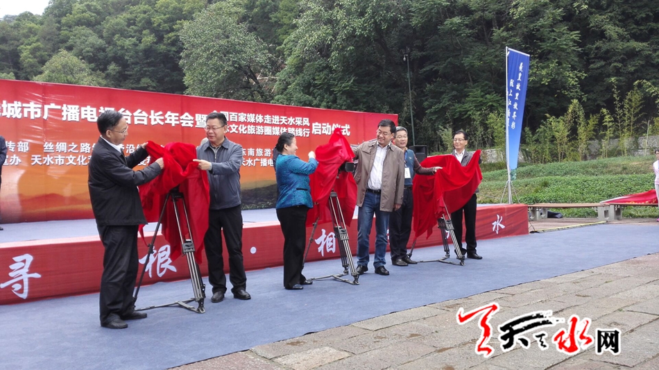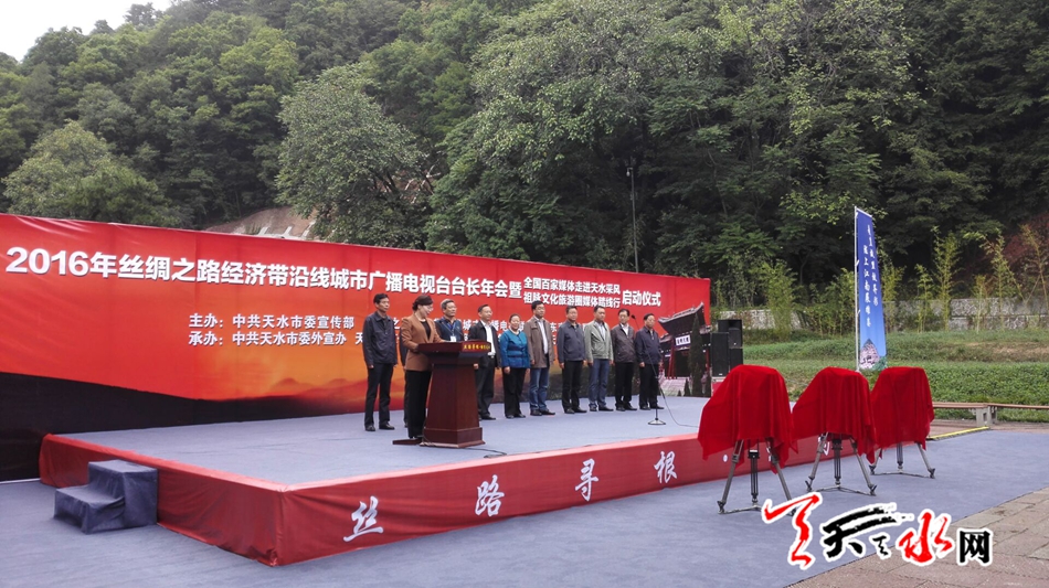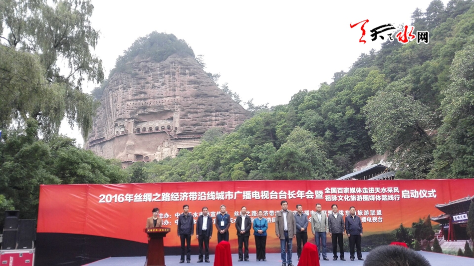 天天天水网26日11时讯 【记者 刘晓亚】9月26日上午,2016年丝绸之路经济带沿线城市广电台长年会暨全国百家媒体走进天水采风、祖脉文化旅游圈媒体踏线行启动仪式在麦积山广场举行。