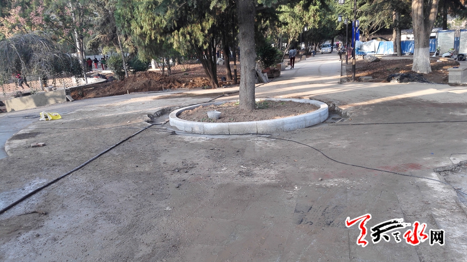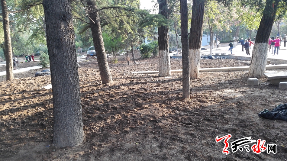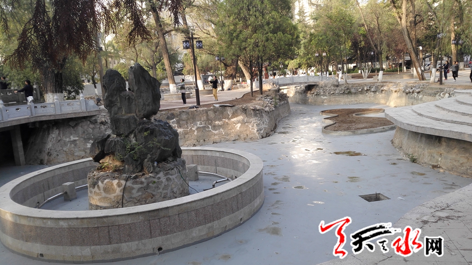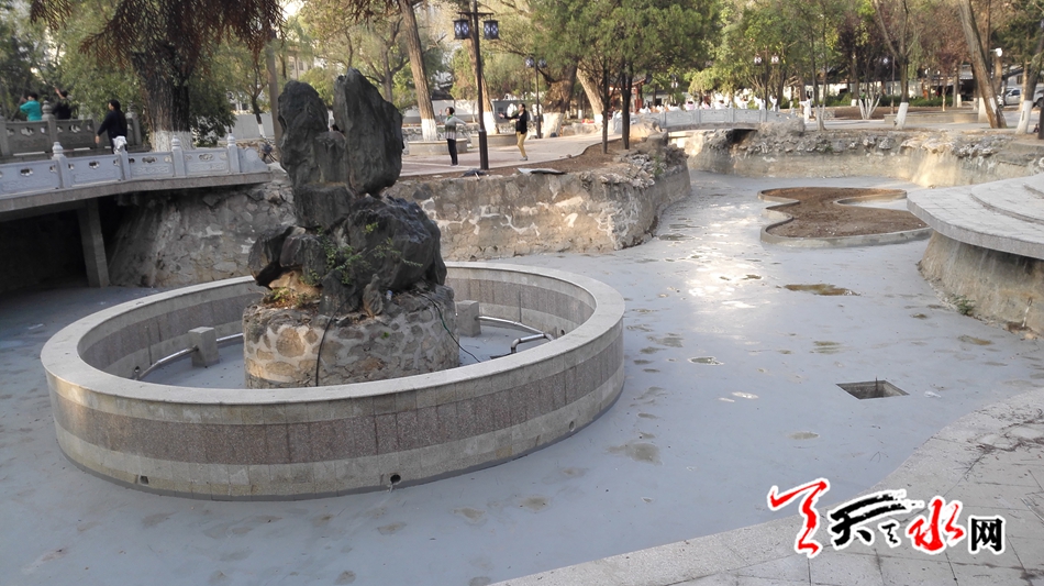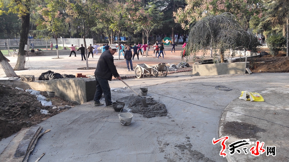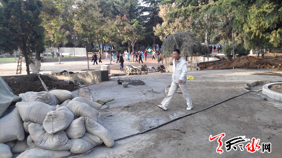 天天天水网28日16时讯 【记者 杨晓斌】9月28日,天水市人民公园大门内,公园改造工程的收尾工程正在紧张进行中。再过一天,新改造后的公园池塘将进行蓄水。据施工人员介绍,池塘蓄水工作将于30日结束。