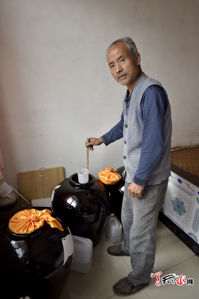 已有三十多年酿造手艺的该村村民王贯儿,家里几代人都会这门手艺,每年酿造千余斤,不但增加了自家的收入,同时也让这一门传统手艺得已传承。