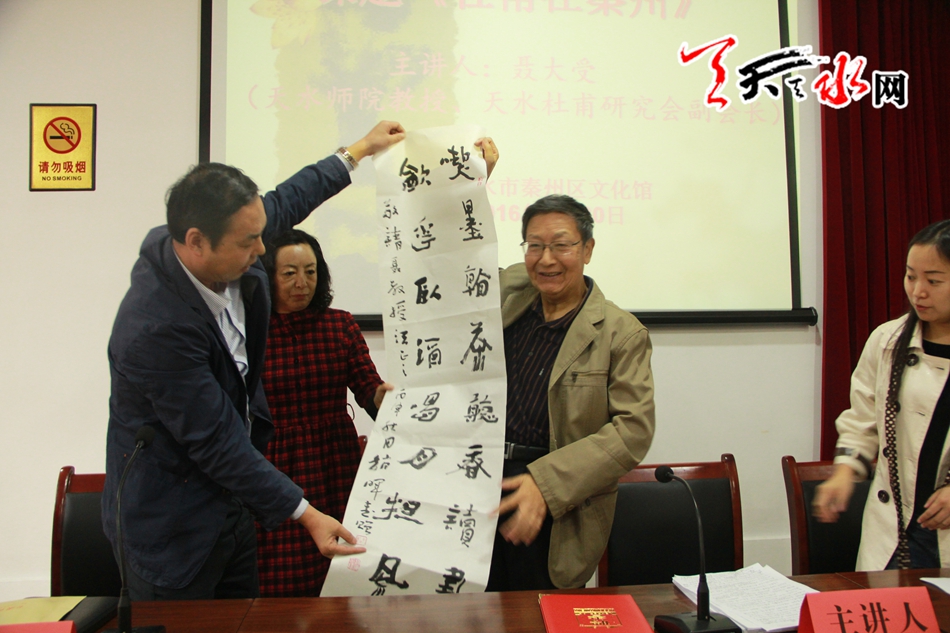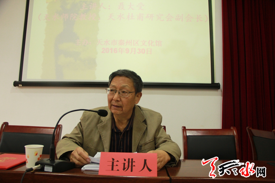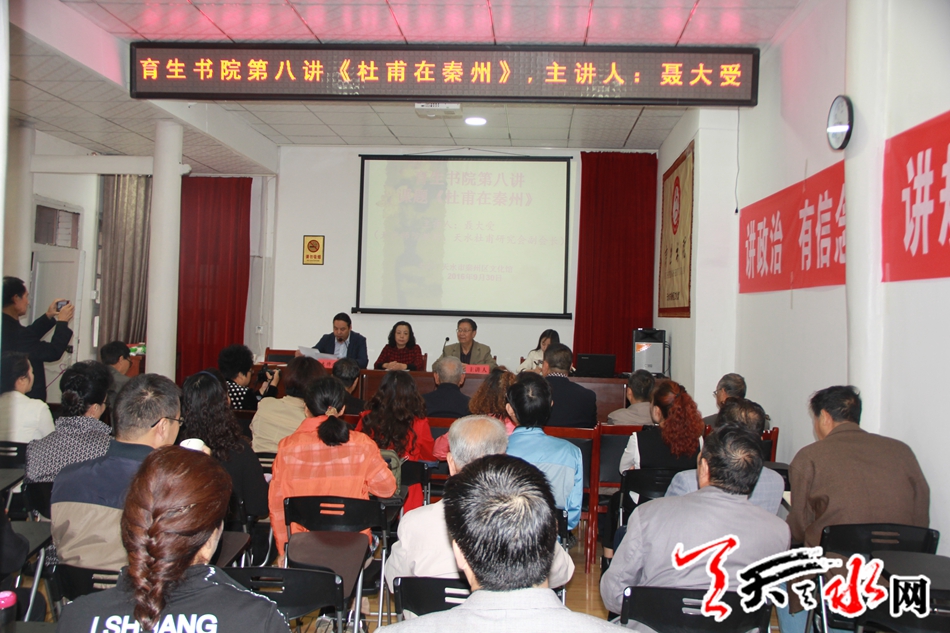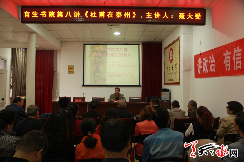 天天天水网30日15时讯【记者 邵兰霞】9月30日上午9点,秦州区文化馆邀请天水师范学院聂大受教授,在育生书院为广大杜甫文学爱好者进行《杜甫在秦州》的专题讲座,本场为育生书院的第八讲。