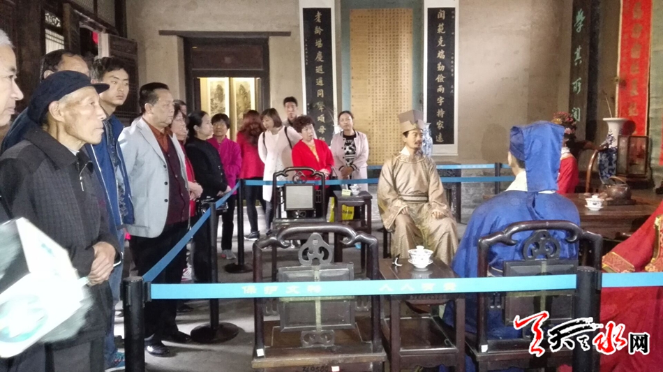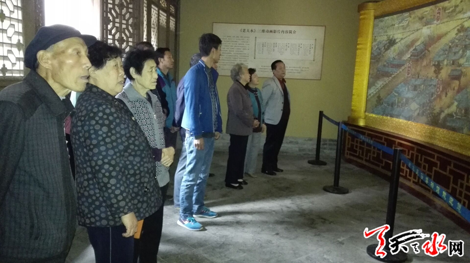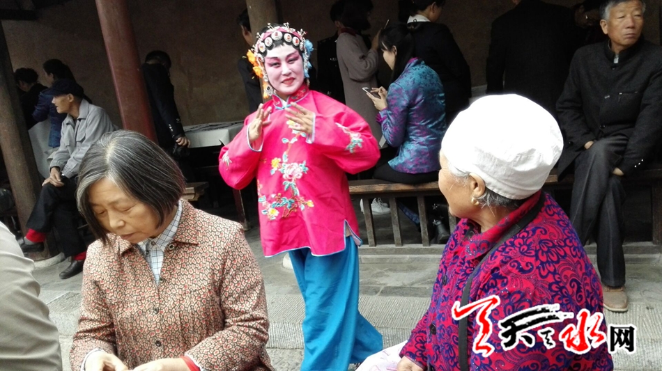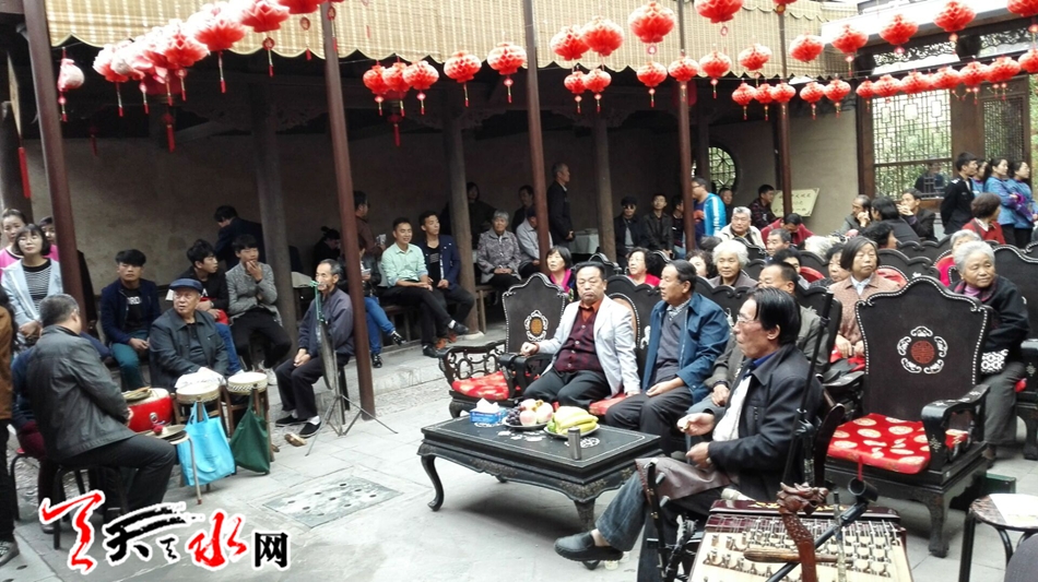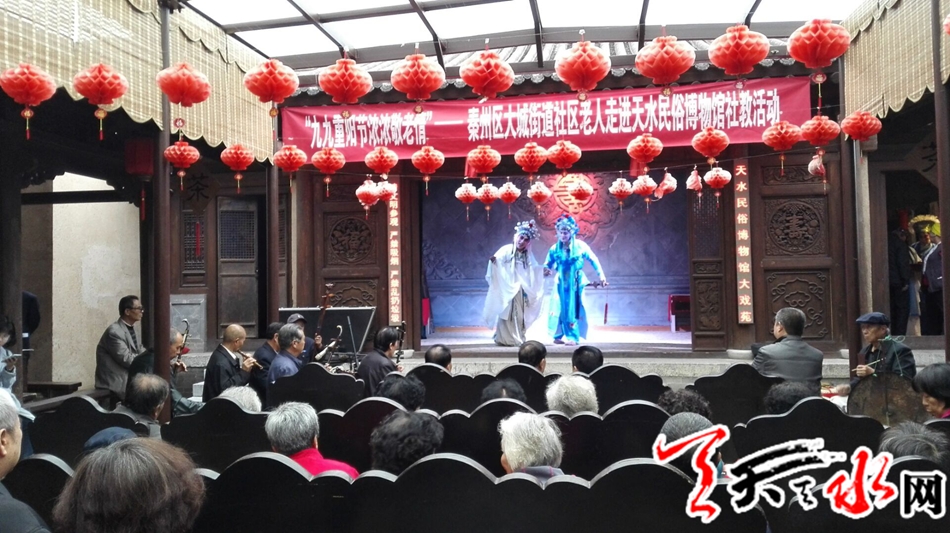 天天天水网9日18时讯 【记者 邵兰霞】10月9日下午三时,在重阳节,天水市民俗博物馆开展“九九重阳节浓浓敬老情”社交活动,来自大城街道办社区的40多位60岁以上的老人来到市民俗博物馆,了解传统民俗文化,品茶听秦腔,让老人们过个与众不同的重阳节。