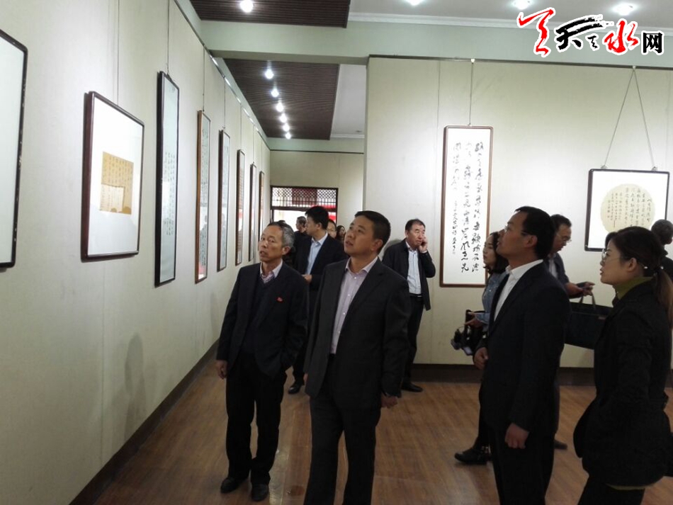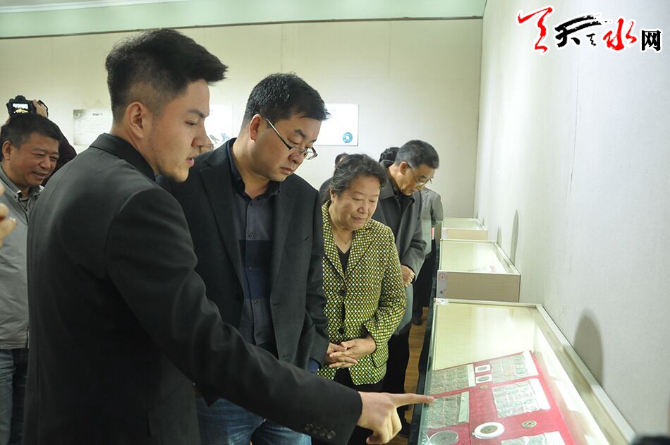 天水市委常委、宣传部长王正茂,甘肃省文化产权交易中心副总经理徐英,天水市人大常委会副主任萧菡,天水市政协副主席、秘书长刘永年,天水市委宣传部常务副部长王小熊出席开展仪式并参观展览。(天水日报记者马哲 摄)