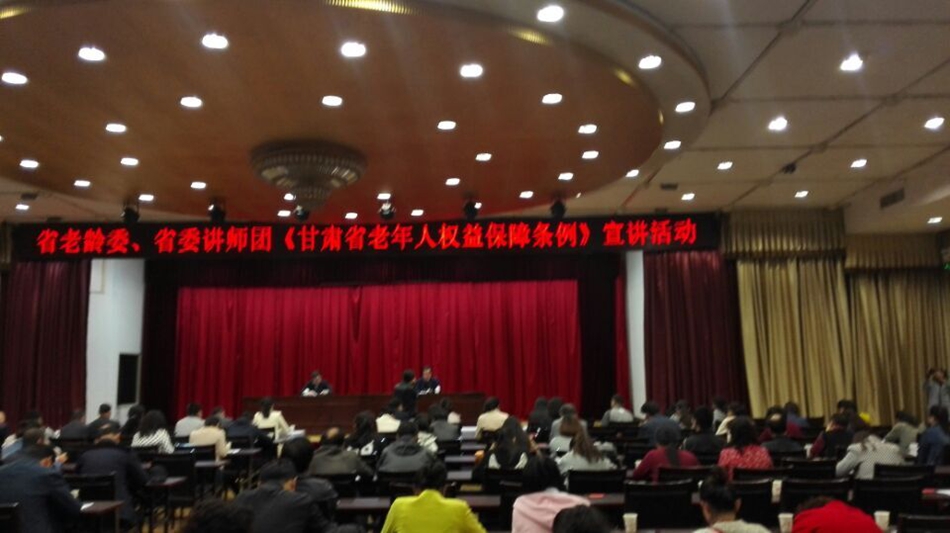 天天天水网讯【记者赵晓玲 李旺】10月10日,由省老龄办、省委讲师团联合开展的《甘肃省老年人权益保障条例》宣讲活动在我市举行。此次宣讲活动邀请省委党校党建研究所所长、教授刘永哲做专题辅导报告。
