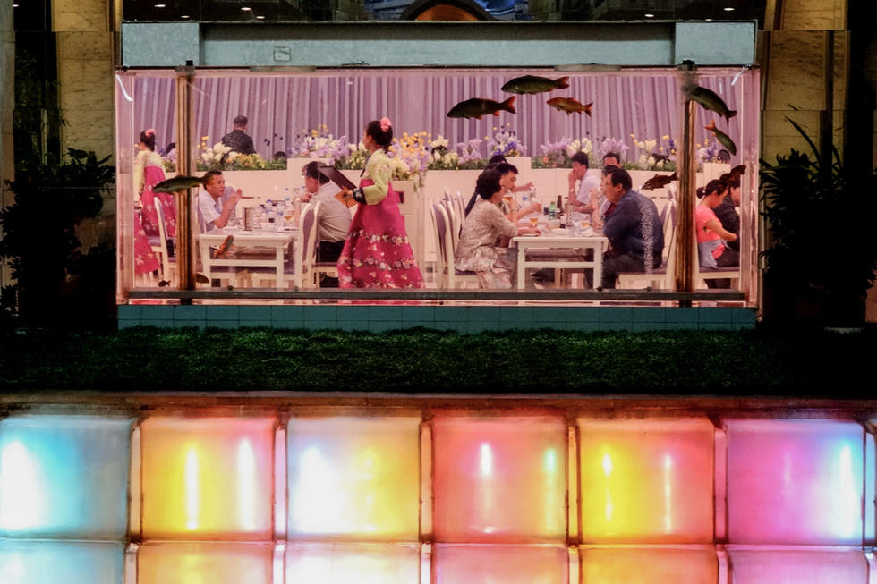 在平壤高丽饭店,人们在里面的一家高端餐厅用餐。