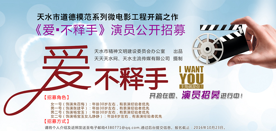 那就来参与微电影《爱·不释手》的剧组演员选拔吧!