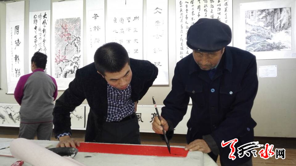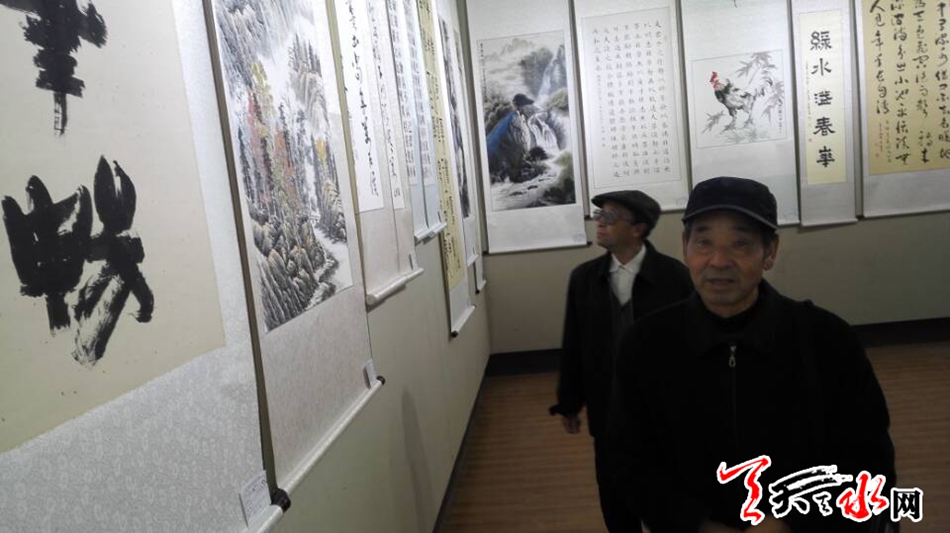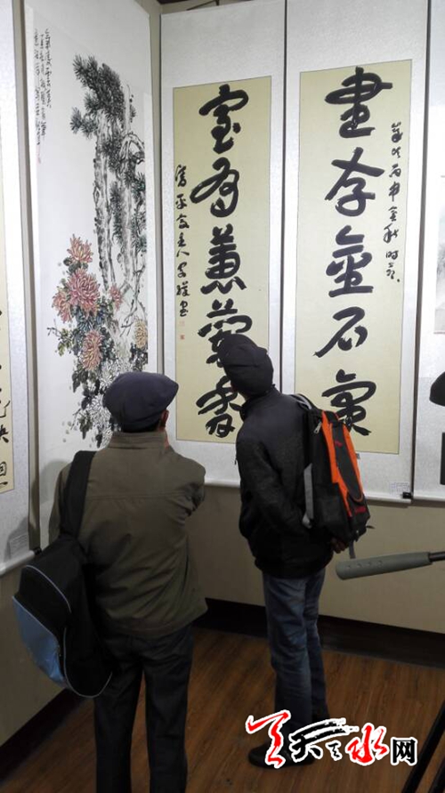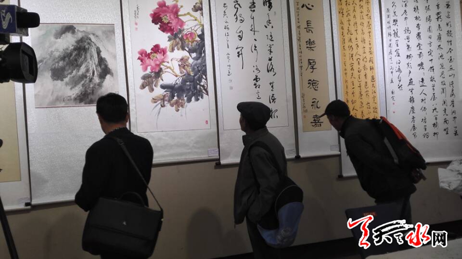 天天天水网13日11时讯 【记者 杨晓斌】天水市牡丹书画院建院十周年会员作品展在市文化馆举办。该展览以"心悦书杯"为主题,翰墨抒发情怀,弘扬社会主义核心价值观,讴歌伟大的祖国,宣扬美丽天水,展示牡丹书画院全体会员作品的创作成果,为推动天水文化强市做出积极贡献。