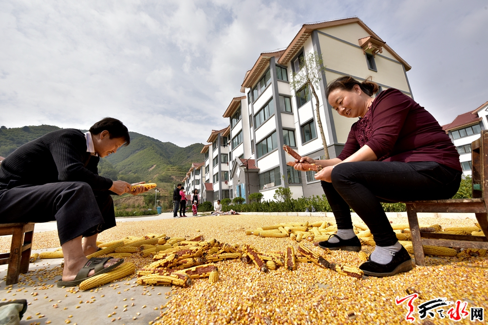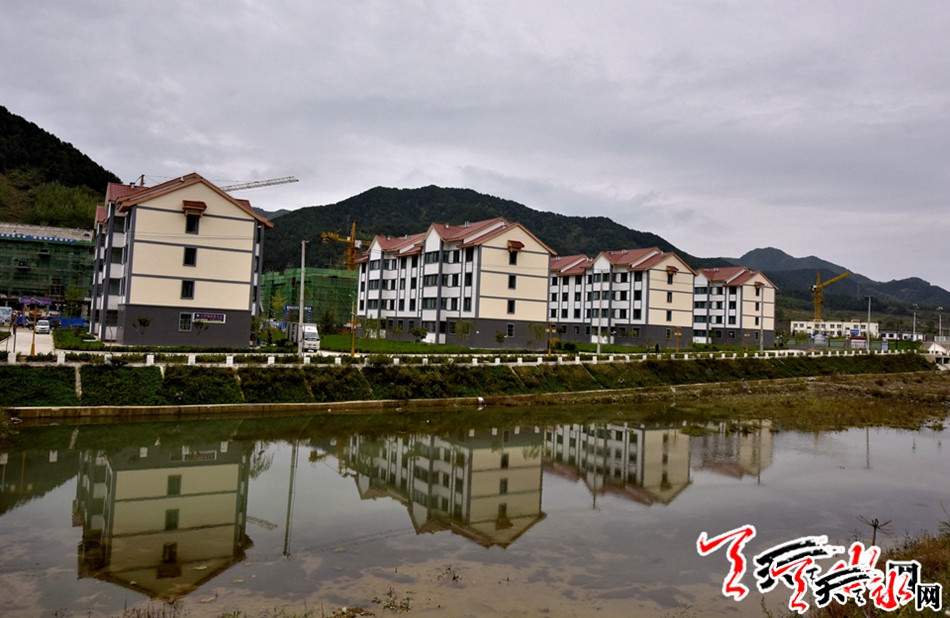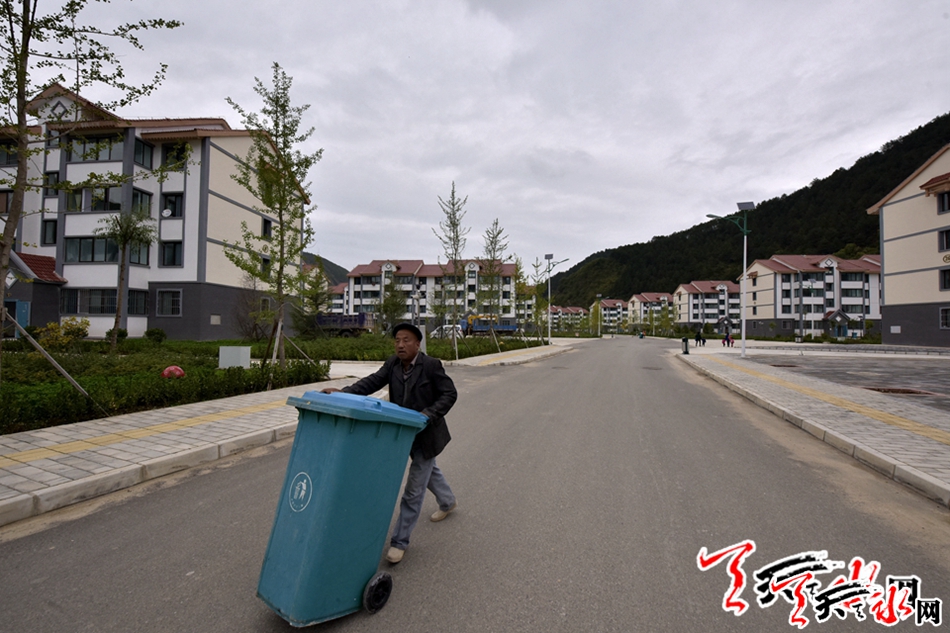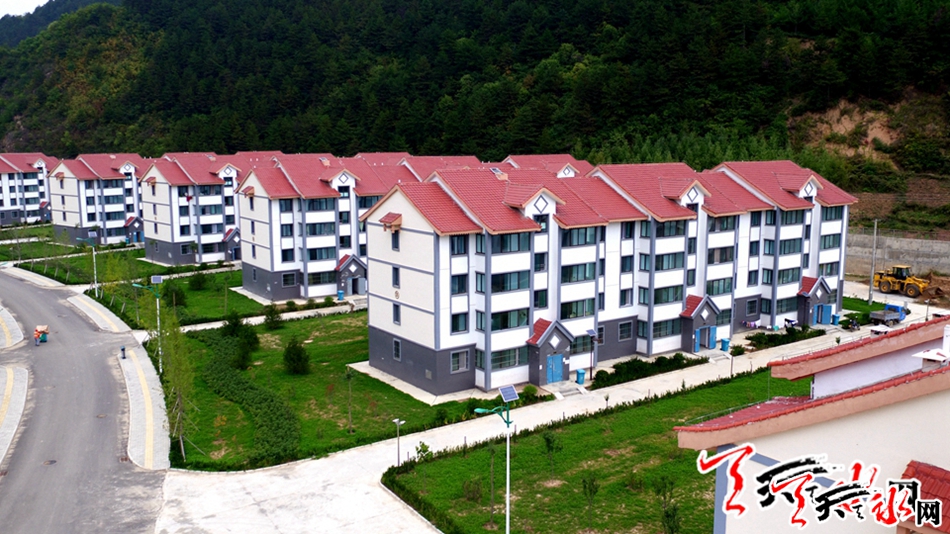 今天的钱家坝安置区扑面而来的是一排排新颖整齐四层住宅楼,宽阔的马路和设计有序的绿化带交相辉映,太阳能路灯一字排开,路上不时有私家车驶过,身着红色工装的清洁工在清扫着路面,阳光下勤劳的村民晾晒着玉米,一副和谐幸福的如意画卷展开在青山绿水间。