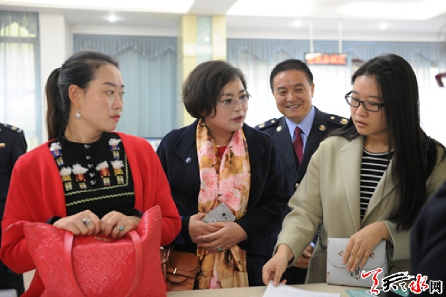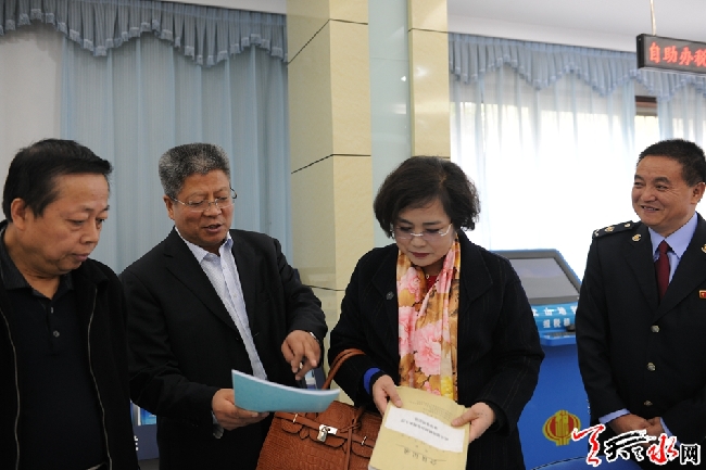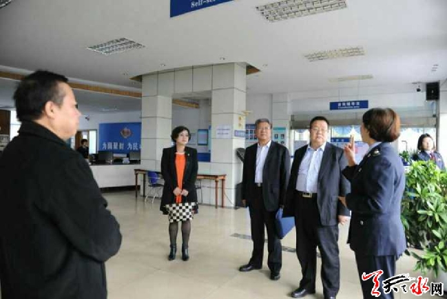 天天天水网讯(通讯员 成雪峰) 近日,市效能风暴行动民主评议第二小组成员彭北生、汪莉娜、刘天泉一行,在市地税局党组成员、副局长张学成的陪同下,对秦州、武山地税局效能风暴行动民主评议工作开展情况进行了专项督查,并采取明查暗访、集体座谈、民主测评、随机询问等方式对行风政风进行了评议。