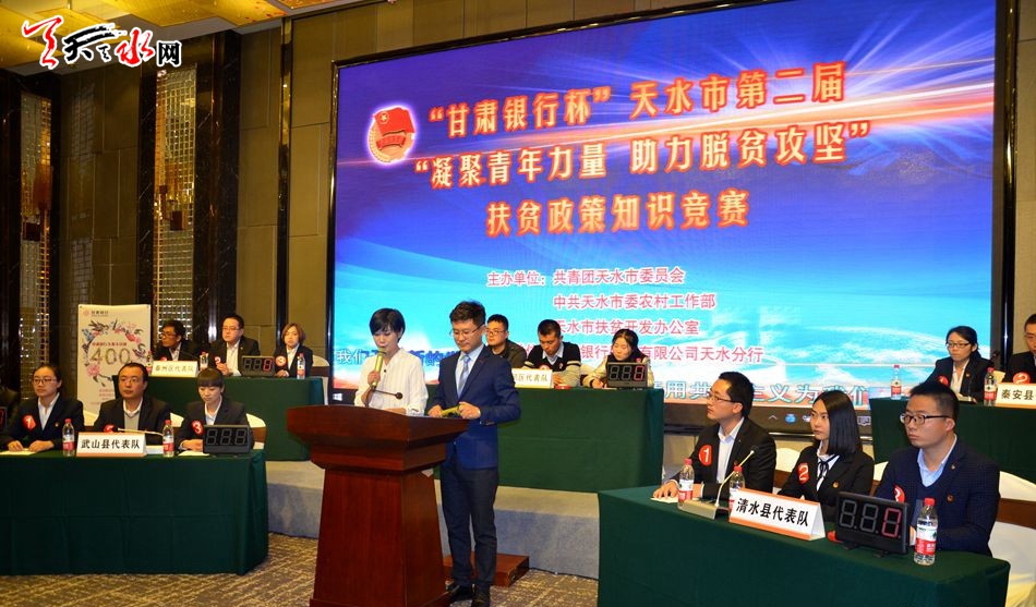 天天天水网讯【记者赵蔓 实习生何流】10月17日,天水市第二届“凝聚青年力量 助力脱贫攻坚”扶贫政策知识竞赛在皇城国际酒店举行。