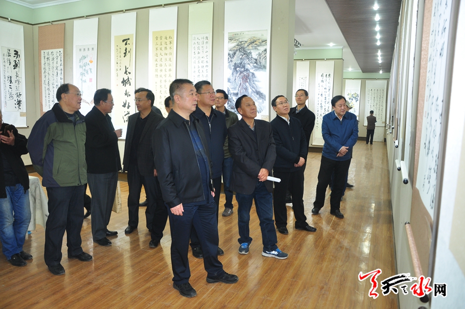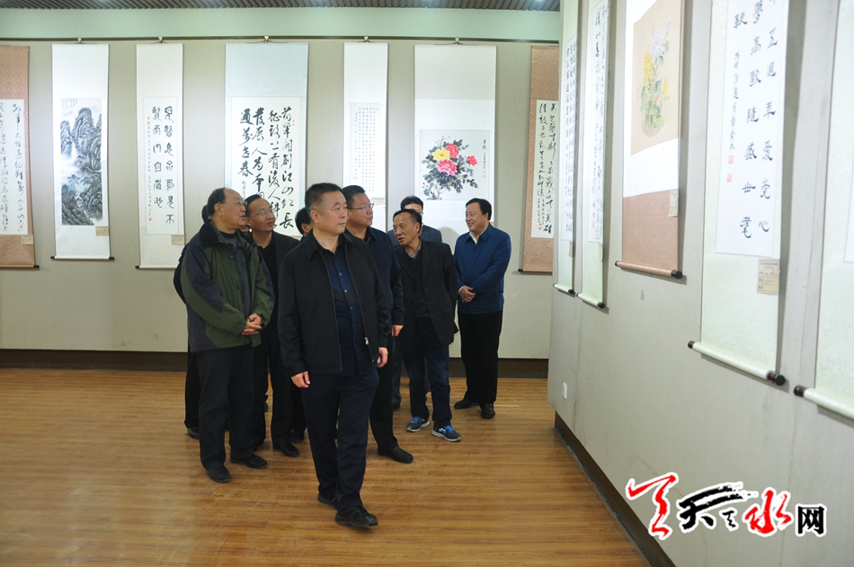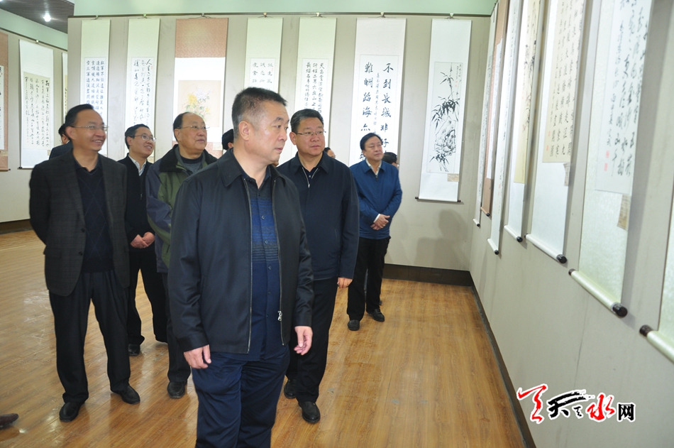 (市委常委、市委秘书长蒋晓强,副市长张建杰,市政协副主席王振宇参观书画展)