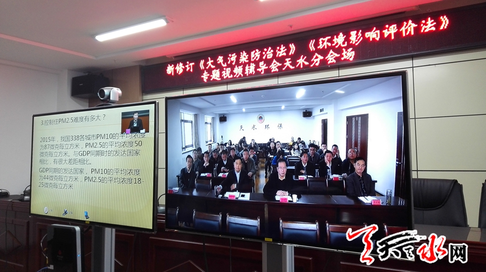 我市各县区政府及县环保局有关负责人,市环委会成员单位及有关企业负责人在天水分会场收听收看辅导会。