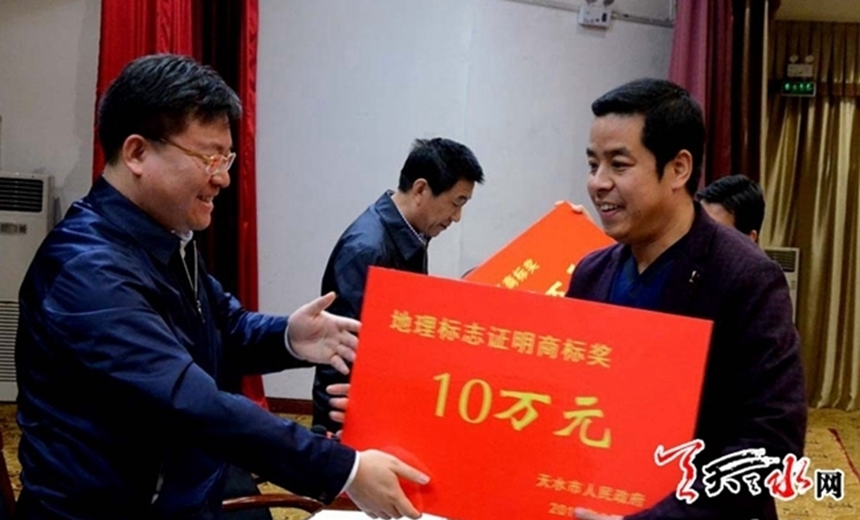 ▲资料图:2016年4月29日,天水市政府130万元重奖驰著名商标和地理标志证明商标企业与持有人。