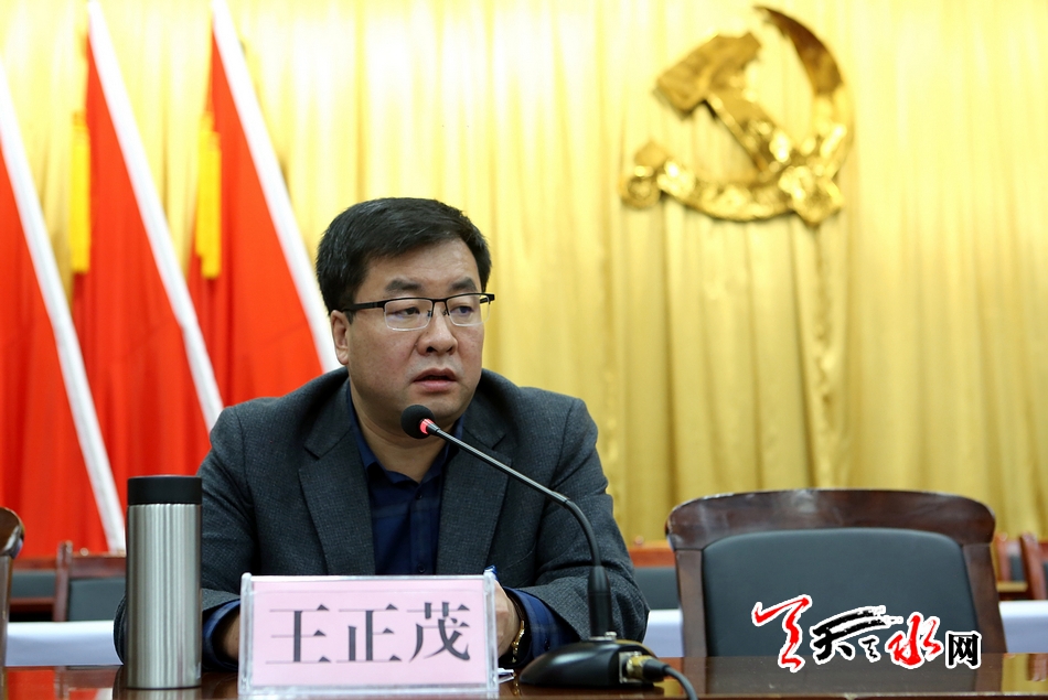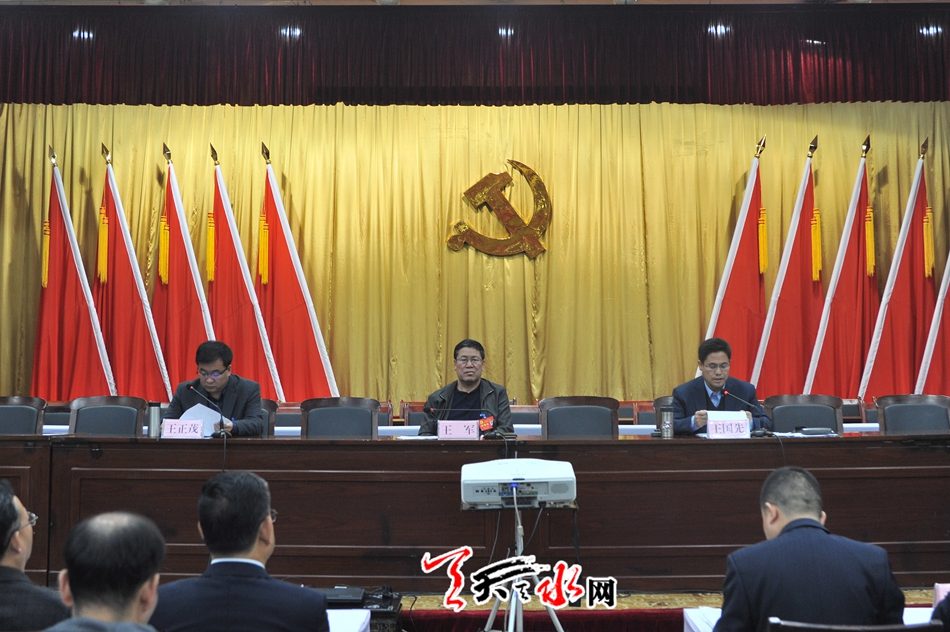 天水市委副书记王军出席会议并讲话,天水市委常委、市纪委书记王国先传达了有关会议精神,天水市委常委、宣传部长、组织部长王正茂主持会议。