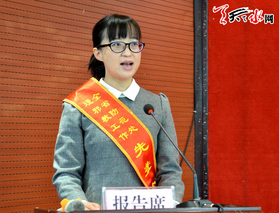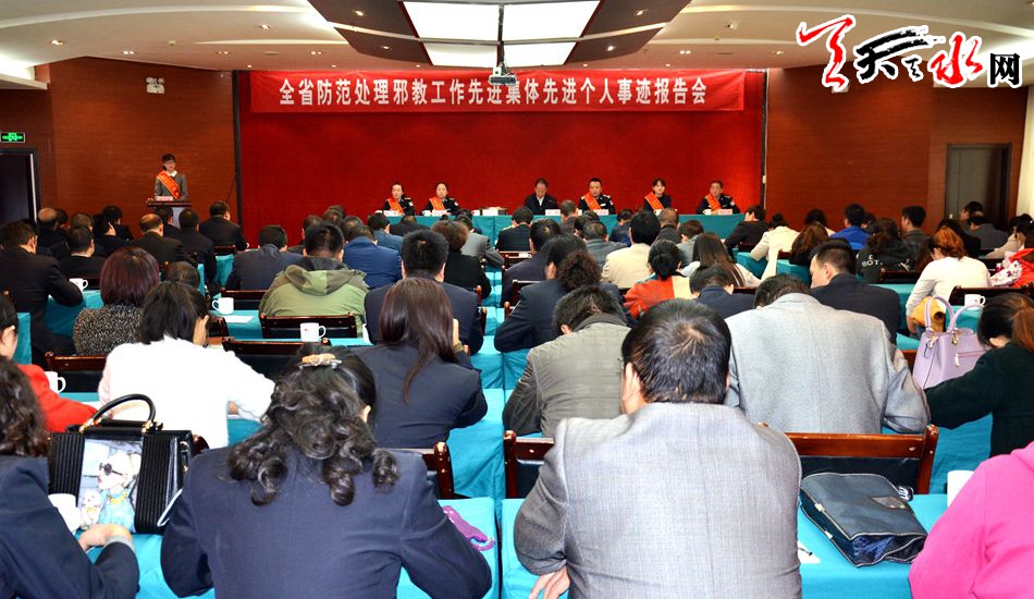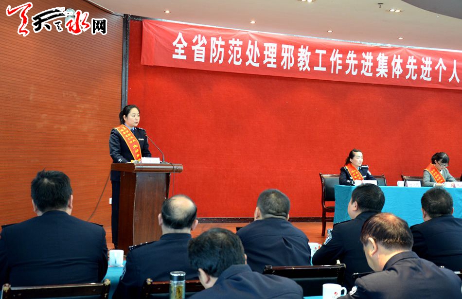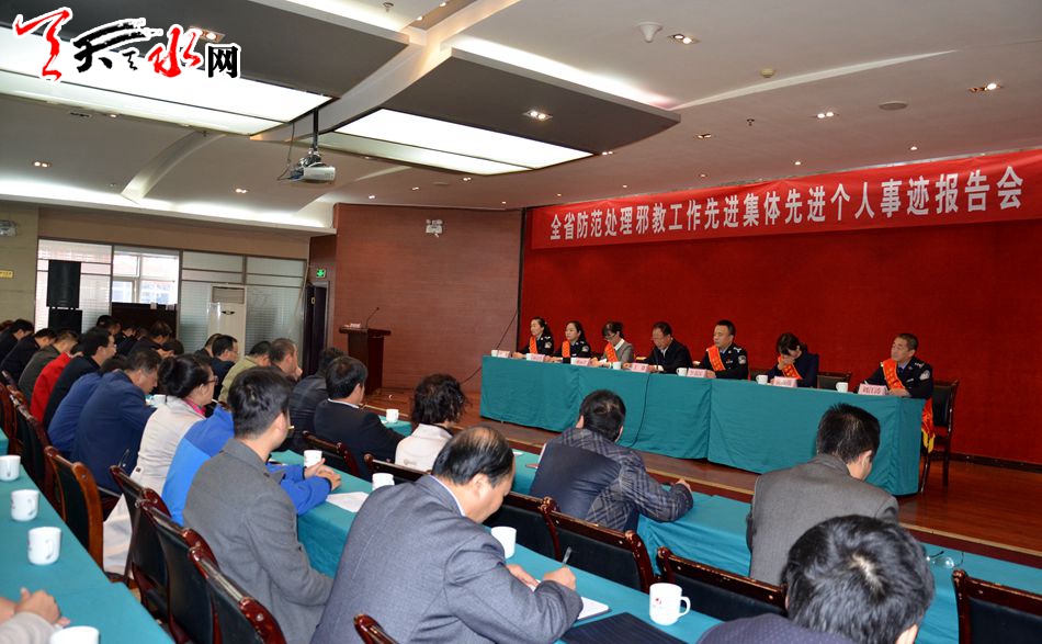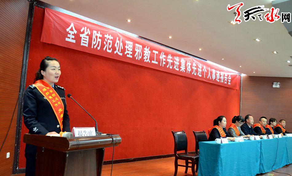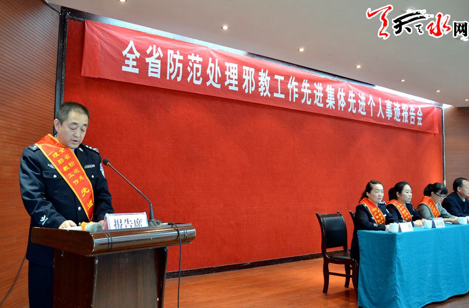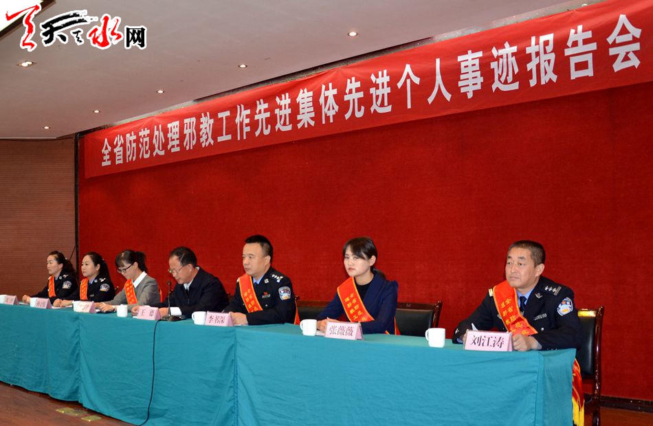 天天天水网讯【记者杨璟】10月26日上午,甘肃省防范处理邪教工作先进集体先进个人事迹报告会在我市召开,由获得甘肃省防范处理邪教工作先进集体先进个人的6名代表作了先进事迹报告。