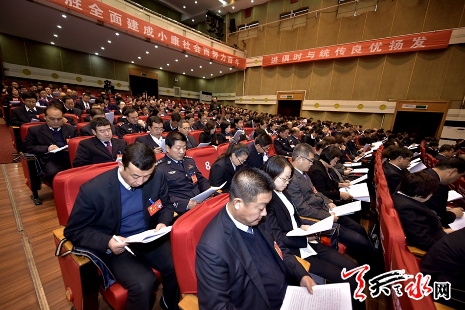 王锐在回顾工作时说,市第六次党代会以来的五年,是我市发展进程中极不平凡的五年。面对复杂环境和繁重任务,市委团结带领全市各级党组织和广大党员、干部群众,深入贯彻中央和省委的决策部署,始终坚持“关天经济区引领、国家级园区支撑、现代化城市带动、县区组团式发展”,全面加强经济建设、政治建设、文化建设、社会建设、生态文明建设和党的建设,顺利实现了“十二五”圆满收官,较好完成了市第六次党代会确定的目标任务,全市各项事业取得了令人瞩目的成就,谱写了天水发展历史上浓墨重彩的崭新篇章,在全面建成小康社会的征程上迈出了坚实步伐。一是在主动适应新常态中化危为机、赶超进位,经济运行的质量和效益持续跃升。GDP连跨400亿元、500亿元台阶,今年有望突破600亿元大关,在全省排名由2011年的第5位前移至2015年的第3位。二是在扎实推进脱贫攻坚中促农持续稳定增收,全面小康社会建设取得重大进展。五年累计减贫101.37万人,贫困人口由2011年底的133.15万预计减少到2016年底的31.78万,贫困发生率由43.26%预计降低到10.33%。三是在全方位深化改革扩大开放中创新完善体制机制,发展的动力活力极大迸发。以经济体制等重要领域和关键环节改革为牵引,累计承接落实“顶层设计”639项、谋划开展“自选动作”183项,新一轮政府机构改革全面完成,“营改增”、公务用车制度改革顺利推进,行政审批制度改革、国资国企改革等深入开展,县级公立医院改革等全国、全省改革试点创出了一些可复制可推广的经验。四是在稳步推进新型城镇化建设中破解二元结构矛盾,城乡面貌发生了巨大变化。启动了三阳川新城、中梁空港城、秦州新城、成纪新城、麦积新城、社棠工业新城、颖川新城和东柯新城建设,中心城区建成区面积增加到68平方公里、建设范围扩大到380平方公里、开发建设用地面积达到148平方公里,城市空间实现了历史性扩展;美丽乡村建设多点开花,农村人居环境明显改观,建成新农村示范村、整洁村分别占12.12%、38.94%;扎实开展“6873”交通突破行动,实施了天水至定西、宝鸡至天水等重大工程,自主投资改造提升310国道秦州至武山段、麦积至甘谷公路,开通了天水至兰州、西安、平凉、敦煌旅游专列和天水至西安、重庆、天津、大连等航线,区域交通运输枢纽地位更加凸显。五是在依法治市、改善民生中维护社会大局和谐稳定,人民群众幸福感明显增强。制定出台《法治天水建设实施纲要》,扎实开展基层法治示范单位创建活动,秦州区、秦安县被评为“全国法治县区创建活动先进单位”;支持人大依法履行职能,启动地方立法工作,促进了法治建设进程。高度重视社会主义协商民主建设,巩固扩大了团结和谐的良好政治局面。牢固树立“大平安”理念,综治信息化建设步入全省前列,建成国家级“平安县”和“平安家庭创建示范县”各1个、省级“平安县区”4个。六是在落实全面从严治党主体责任中加强党的建设,营造了风清气正的政治生态。深入开展党的群众路线教育实践活动、“三严三实”专题教育、“两学一做”学习教育,党员干部接受了严格的党性锻炼,党内生活更加规范,思想政治建设进一步加强。认真贯彻《党政领导干部选拔任用工作条例》,加大干部调整交流力度,领导班子和干部队伍建设呈现新气象。建立层层联动、书记主抓的党建工作责任体系,动态整顿转化软弱涣散基层党组织1204个,基层党组织的战斗力凝聚力明显增强。深入实施党风廉政建设“3783”主体责任体系,深化效能风暴行动,加大整治纠正“四风”力度,查处违反中央“八项规定”精神问题372起、处理594人、给予党纪政纪处分156人,为全市经济社会发展提供了有力的纪律作风保证。