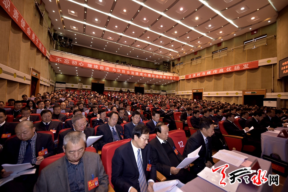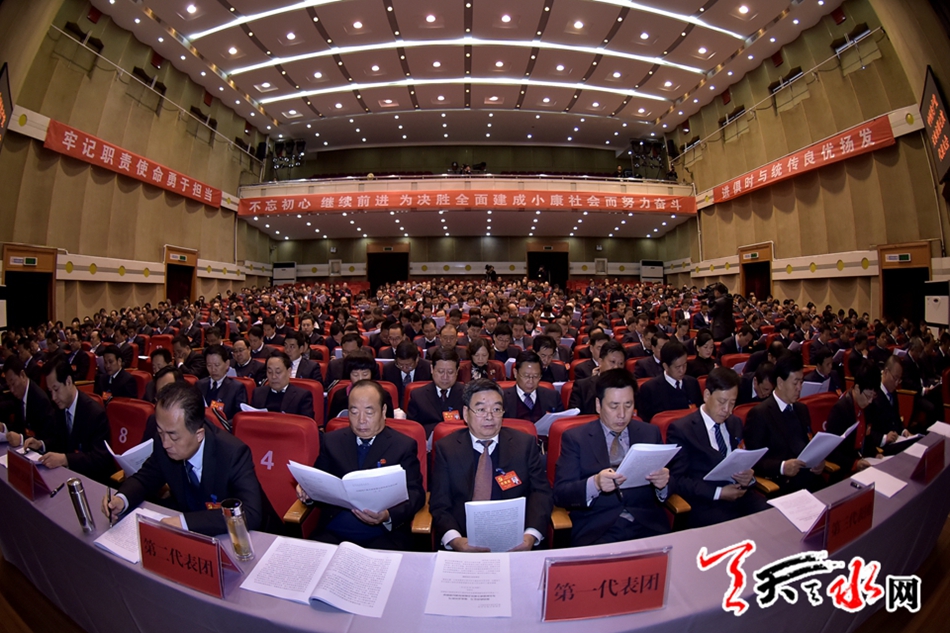 大会的主题是:深入学习贯彻习近平总书记系列重要讲话精神,全面落实创新、协调、绿色、开放、共享发展新理念,动员全市各级党组织和广大党员、干部群众,在新的起点上凝心聚力、砥砺前行,协调推进“四个全面”战略布局和“五位一体”总体布局,为如期实现全面建成小康社会目标、加快建设幸福美好新天水而努力奋斗。