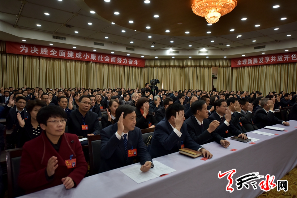 大会以举手表决的方式通过了《中国共产党天水市第七次代表大会选举办法》;通过了总监票人、监票人名单;宣布了总计票人、计票人名单。