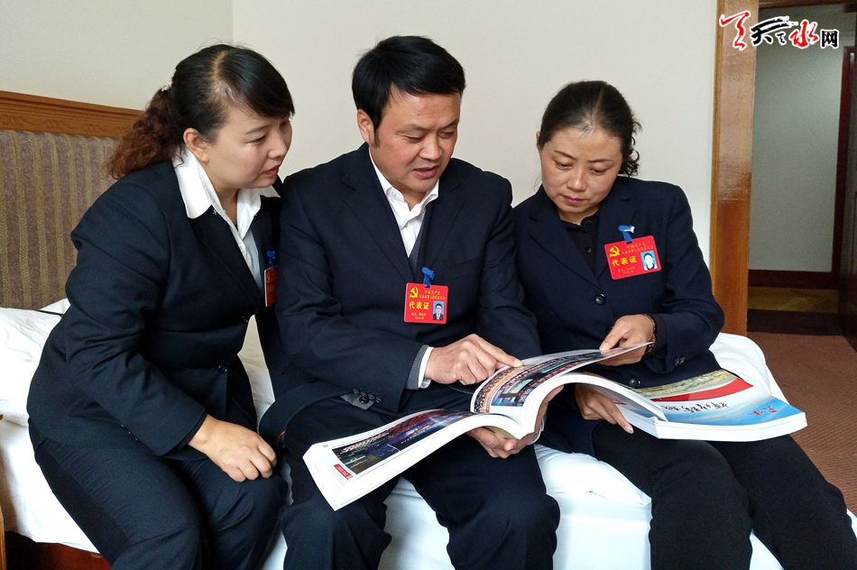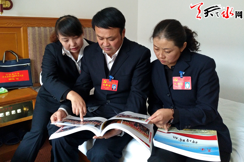 10月28日,参加中国共产党天水市第七次代表大会的代表们在翻阅“天水2011—2016辉煌跨越”图册。