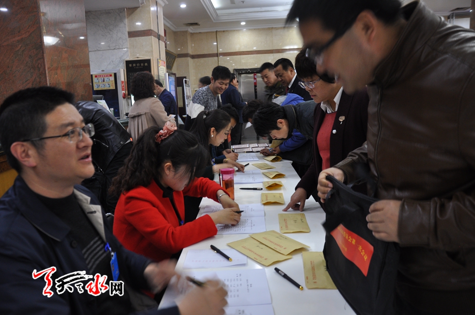 天天天水网讯【记者 刘晓亚】10月29日下午2时许,参加天水市政协第七届委员会第一次会议的政协委员陆续向大会组委会报到。来自我市各界别的300多名政协委员将携带自己精心准备的提案参加此次会议,就事关天水经济、精准扶贫、城市管理、养老服务、农村文化发展等多个领域积极发挥参政议政的作用,充分表达自己的独特见解,为天水市社会经济发展和政府决策提供参考。