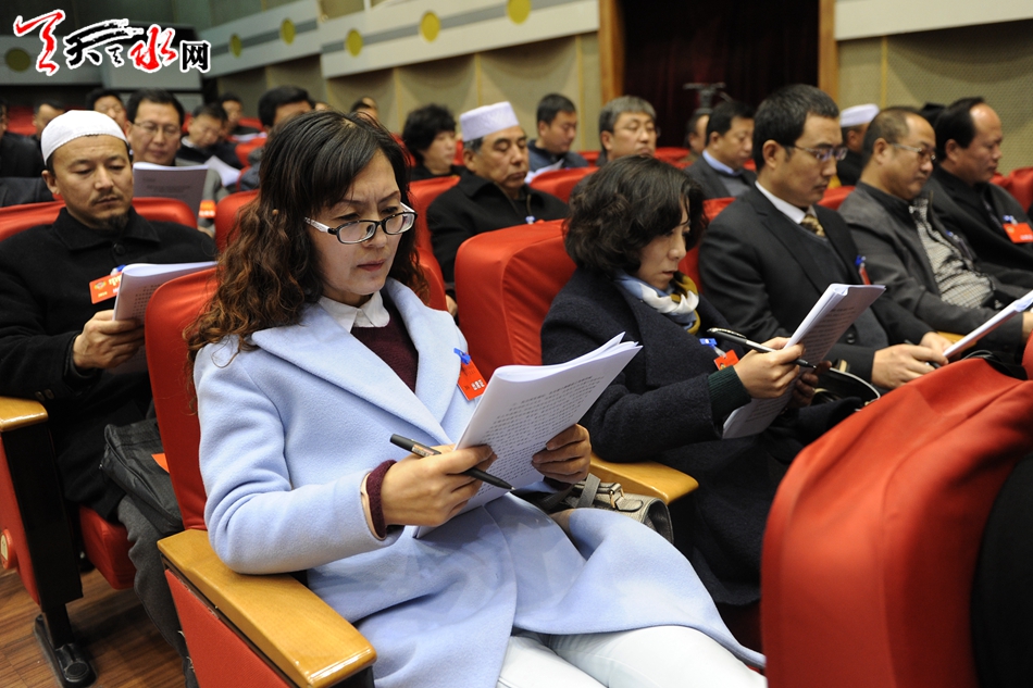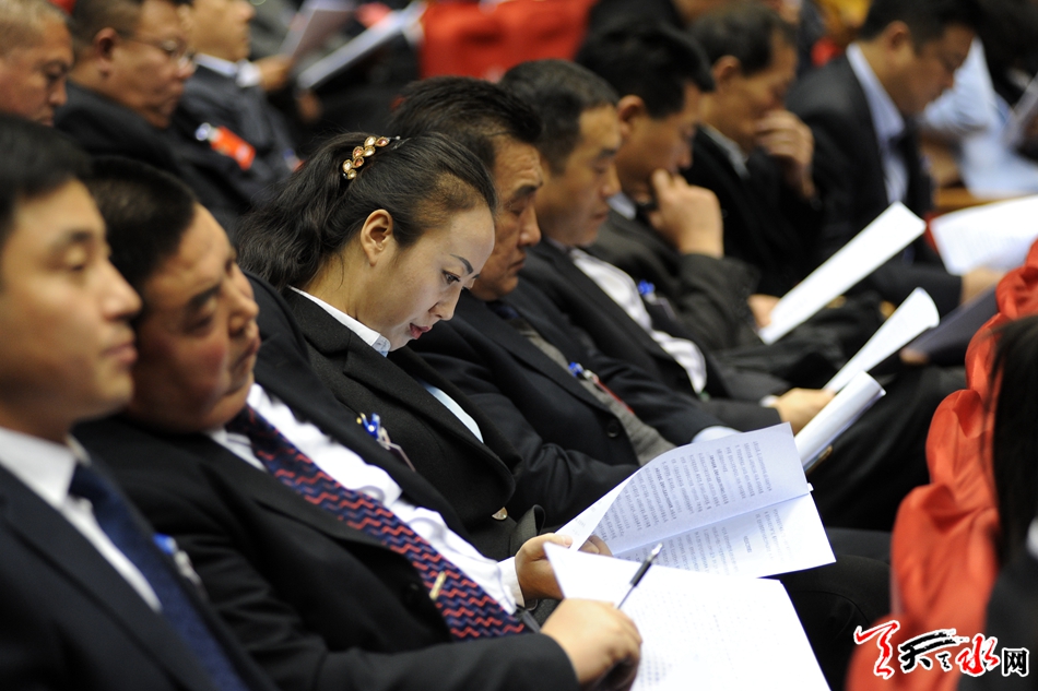 10月30日,参加天水市政协七届一次会议的委员们认真听取了《政协天水市第六届委员会常务委员会工作报告》和《政协天水市第六届委员会常务委员会关于提案工作情况的报告》。(天水日报记者周文涛 摄)