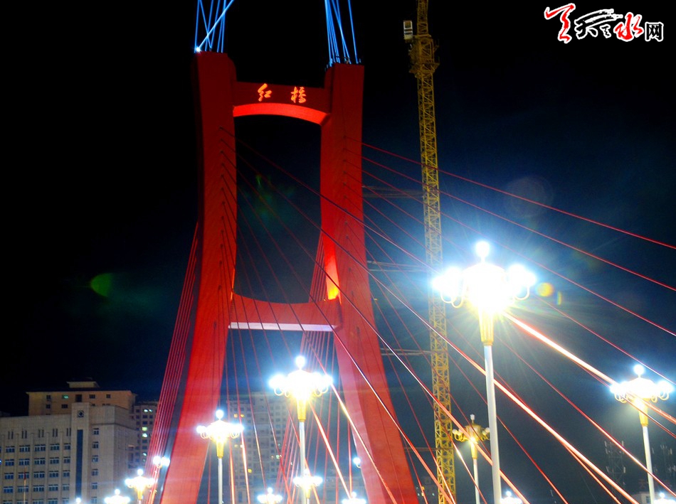 天天天水网讯 10月30日晚,记者路过天水藉河“红桥”时看到,该桥已全面开启亮灯模式。绚丽多彩的灯光和红色的桥身、钢索交相辉映,显得极为壮观和美丽。