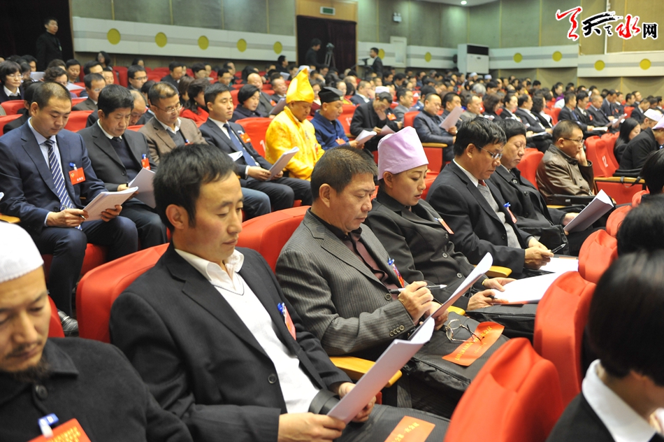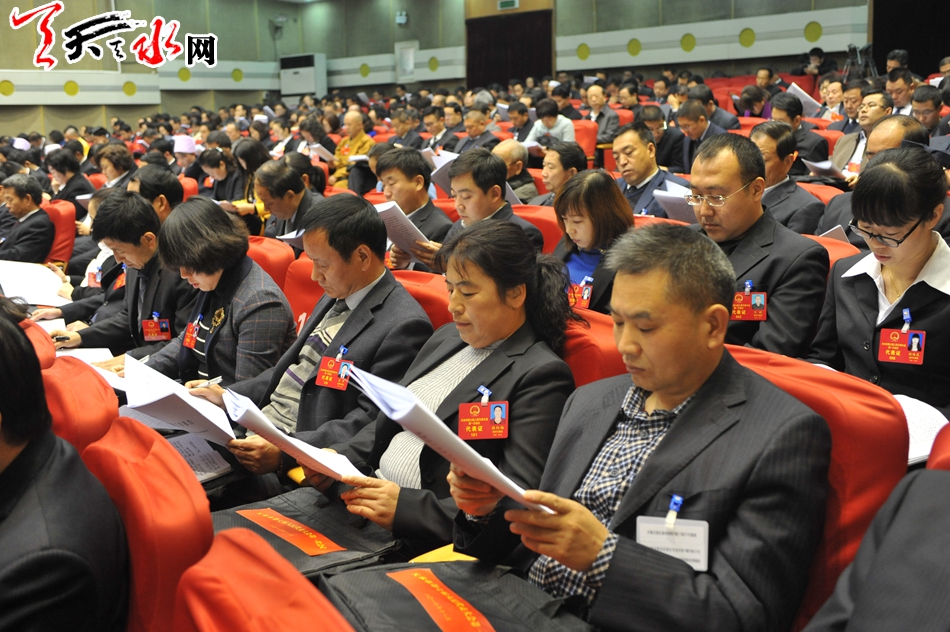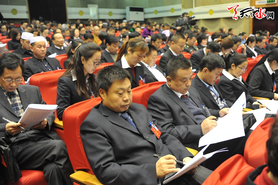 11月1日上午,参加天水市七届人大一次会议的市人大代表在第一次全体会议上认真听取市长杨维俊所作的《政府工作报告》。(天水日报记者孙镇 摄)