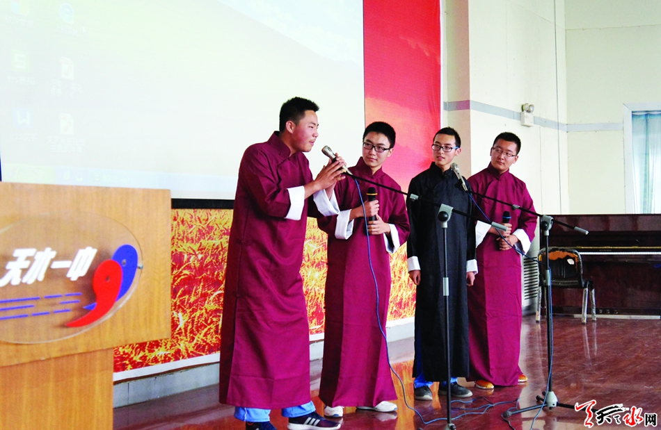 10月27日,记者来到天水市一中,见到了校团委副书记黄琥,他告诉记者,天水市第一中学是甘肃省重点中学,2000年被甘肃省教育厅评定为首批省级示范性普通高中。前身是始建于1875年,次年五月正式竣工,命名为“陇南书院”,1904年初,学校建立现代学制,先后历经甘南中学堂、陇南中学堂、陇南初级师范学堂、甘肃省第三中学、省立天水中学、甘肃省天水第一中学、天水市第一中学等历史时期。学校的校训是“苦志以求立、广学以求通”,在历年的高考当中都以绝对优异的成绩送走了一批又一批的学子,但学校却不会只让学生们“埋头苦读”,它将学习与兴趣爱好相结合,让学生在紧张地学习当中,释放压力,“轻装上阵”。