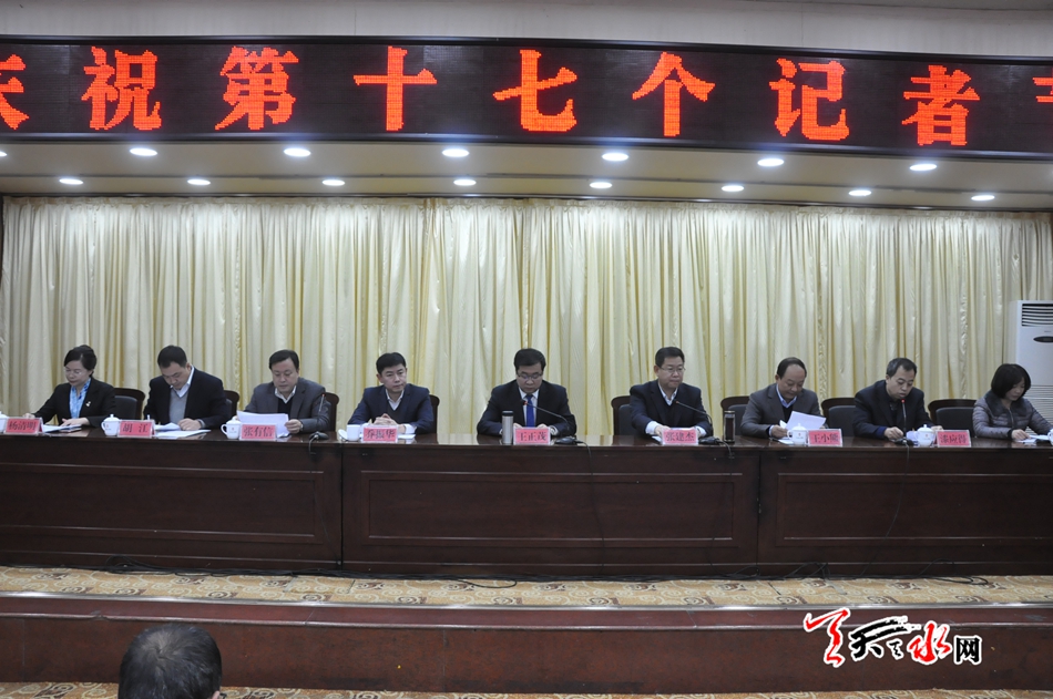 天天天水网讯 【记者 李欣桐】11月8日,我市召开庆祝第十七个记者节座谈会,全市新闻战线代表欢聚一堂,共同庆祝自己的节日。市委常委、组织部长、宣传部长王正茂出席会议并向全市新闻工作者致以节日的祝贺和诚挚的问候,向所有关心支持新闻事业的各界人士表示衷心的感谢。座谈会由副市长张建杰主持。