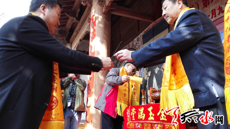 天天天水网讯 【记者 马哲 李旺旺 】11月9日,世界赵姓(丙申年)第六届祭祀大会在秦州区解放路的赵姓天水堂隆重举行。当天,来自全国各地的赵氏后裔代表首先去伏羲庙拜谒中华人文始祖伏羲,随后在赵氏天水堂举行了祭祖大会活动,寻亲祭祖,祈福纳祥。