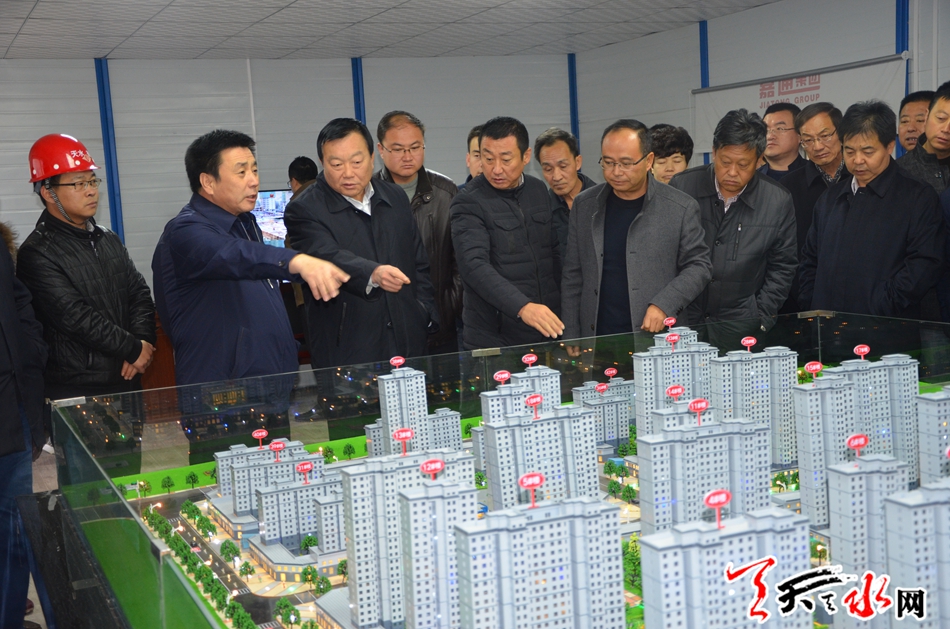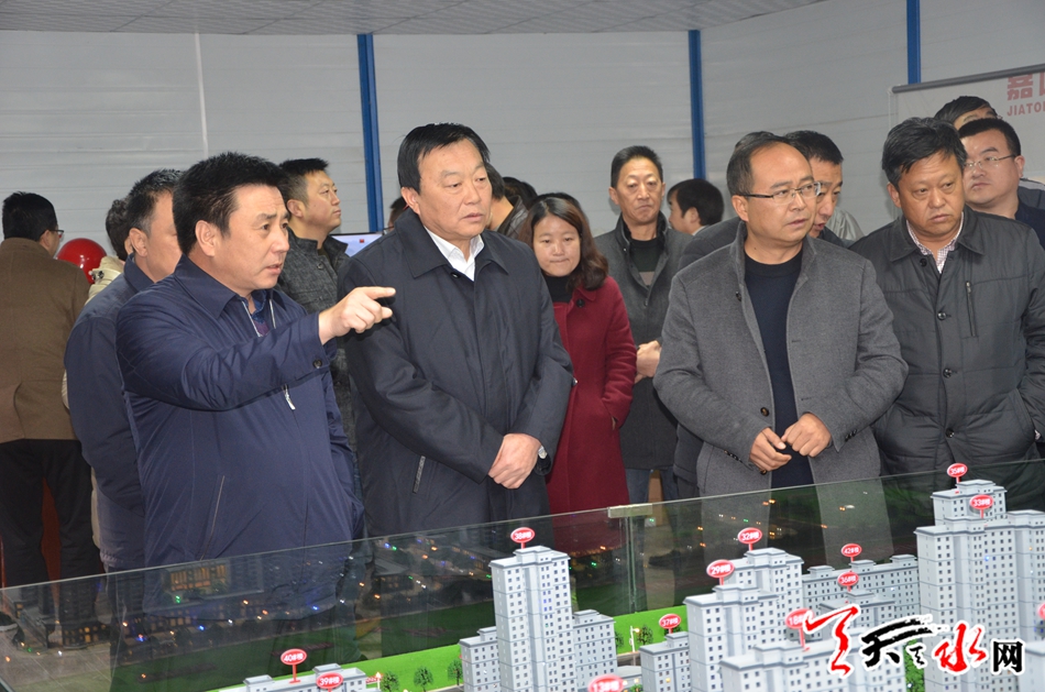 在现场听取汇报后,天水市委常委、秦州区委书记雷鸣,秦州区委副书记、区长刘文玺带着工作组全体成员饶有兴趣的参观了项目模型沙盘,详细询问了绿化、道路、供水等配套设施的规划建设情况后,雷鸣书记说:“这个项目建设进度比较快,但要更注重质量建设,同时要把绿色、环保、节能等现代建筑理念充分融入到施工的各个环节,让安置户住的放心、安心、舒心!”区长刘文玺对藉口镇书记说,藉口是秦州的西大门,也是天水市的西大门,你们一定要把藉口镇建设好,发展好,为市上和区上树立一个良好发展的形象。