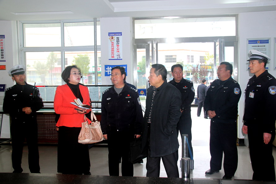 天天天水网讯 11月11日,天水市直机关工委书记雒建明带领市第二行评组在市公安局交警支队党总支委员、政工科科长何全全,县委常委、政法委书记秦永斌,县公安局政委崔志强,县公安局副局长董魁中的陪同下,对清水县公安局交警大队进行政风行风民主评议。