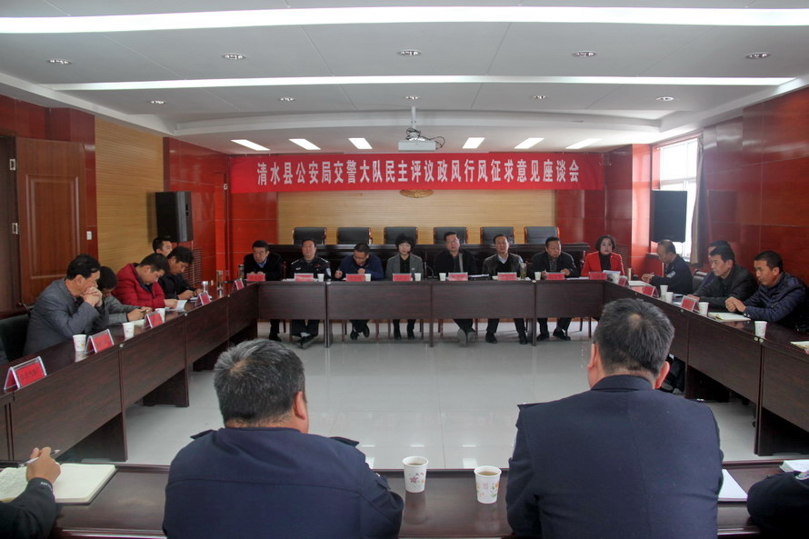 之后在大队五楼会议室召开民主评议政风行风征求意见建议座谈会,大队领导班子、运输企业、驾校、汽修厂、建材公司等法人代表共计30余人参加了此次座谈会,县公安局副局长董魁中主持会议。会上,大队教导员杜小强就大队基本情况、交通管理工作及队伍管理等方面做了汇报;各行业代表结合自己行业特点及亲身感受对大队在政风行风及交通管理工作提出了现实的意见和建议;市第二行评组对大队政风行风、交通管理、代表提出的意见等方面进行了点评,通报了此次行评过程中发现存在的问题,给出了整改意见。