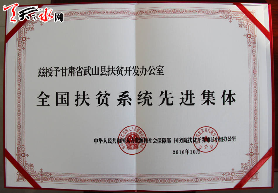 天天天水网武山讯(记者关招宏)从日前在北京召开的全国脱贫攻坚奖表彰大会上传来喜讯,武山县扶贫办荣获“全国扶贫系统先进集体”称号。此次表彰大会共表彰了49个全国扶贫系统先进集体和57个扶贫先进工作者,武山县扶贫办是甘肃省荣获此荣誉称号的两个单位之一。