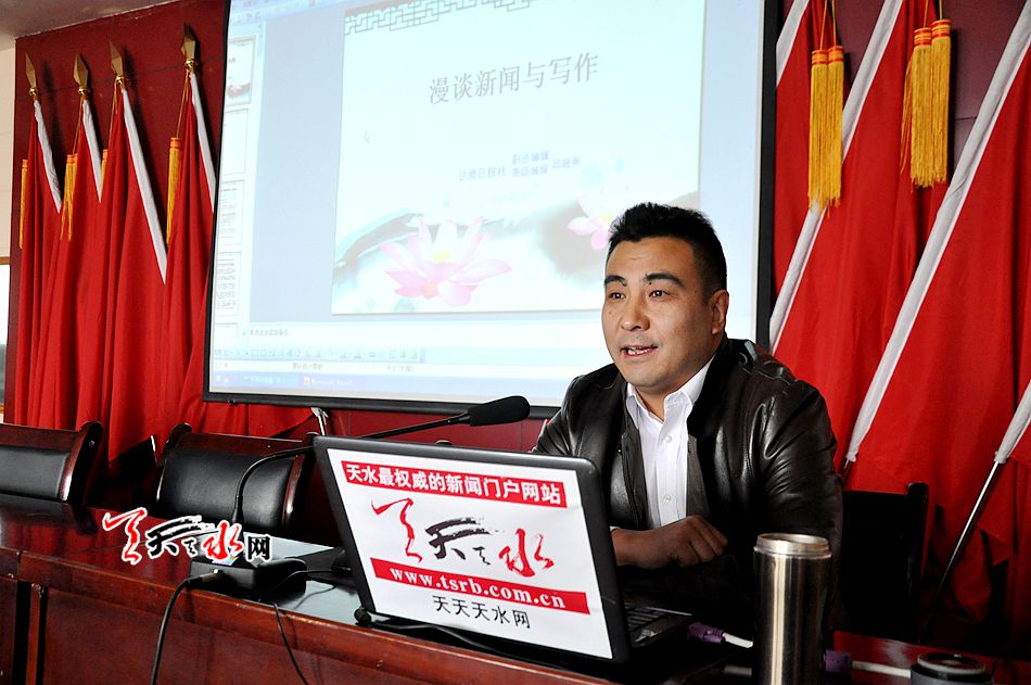 天天天水网讯【记者赵晓玲】11月16日下午,全省宣传文化系统高层次人才“走基层、心连心”社会实践活动系列活动之《漫谈新闻与写作》专题培训在天水日报社举行。