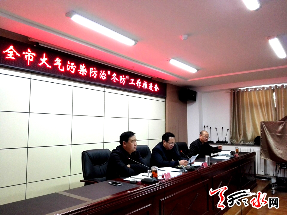 天天天水网22日17时讯【记者李欣桐 实习生闫波】11月22日,我市召开大气污染防治“冬防”工作推进会,就大气污染防治“冬防”工作再安排、再部署。副市长何东出席会议。