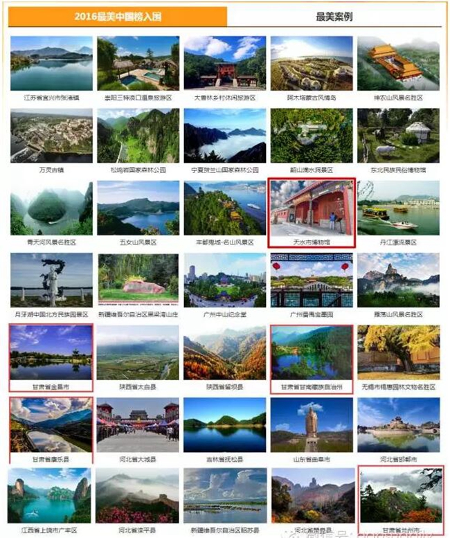 前不久2016创新“互联网+全域旅游”暨第四届旅游业融合与创新论坛上“2016最美中国榜”正式发布。甘肃有五个地方入围,分别是:
