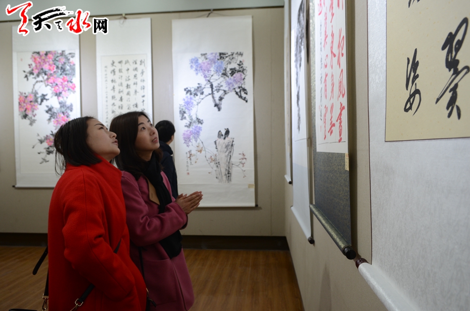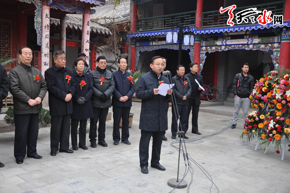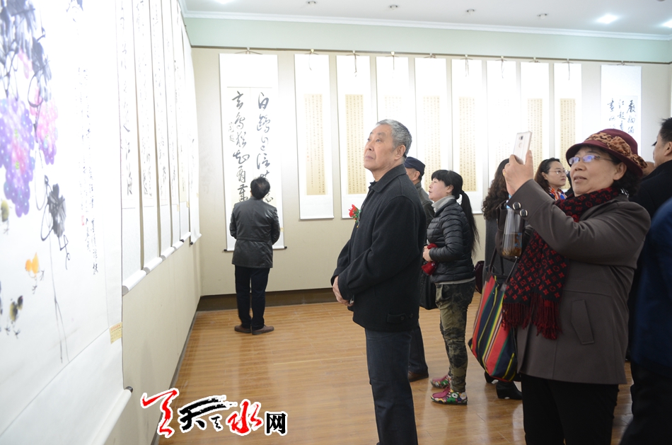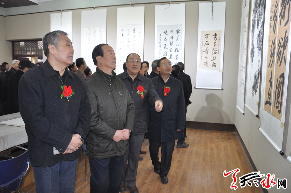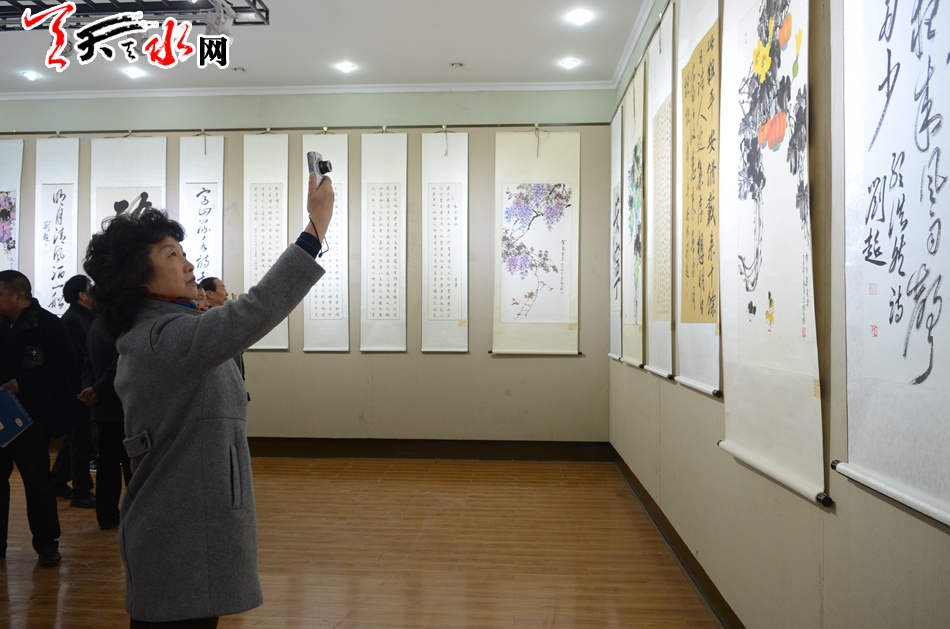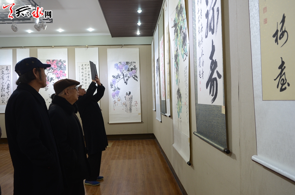 天天天水网讯【记者何郁】11月25日,霜叶墨韵颂盛世——李世荣陶元德刘超书画作品展在天水市文化馆隆重开幕。天水市政协副主席王振宇、刘永年、苏定武,老干部乔正风、王志荣等出席开幕式。
