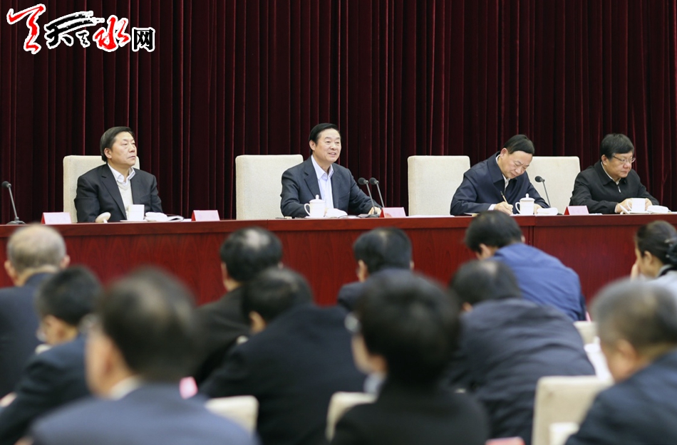 ▲图为中共中央政治局委员、中宣部部长、中央文明委副主任刘奇葆出席会议并讲话。(新华社记者丁林 摄)