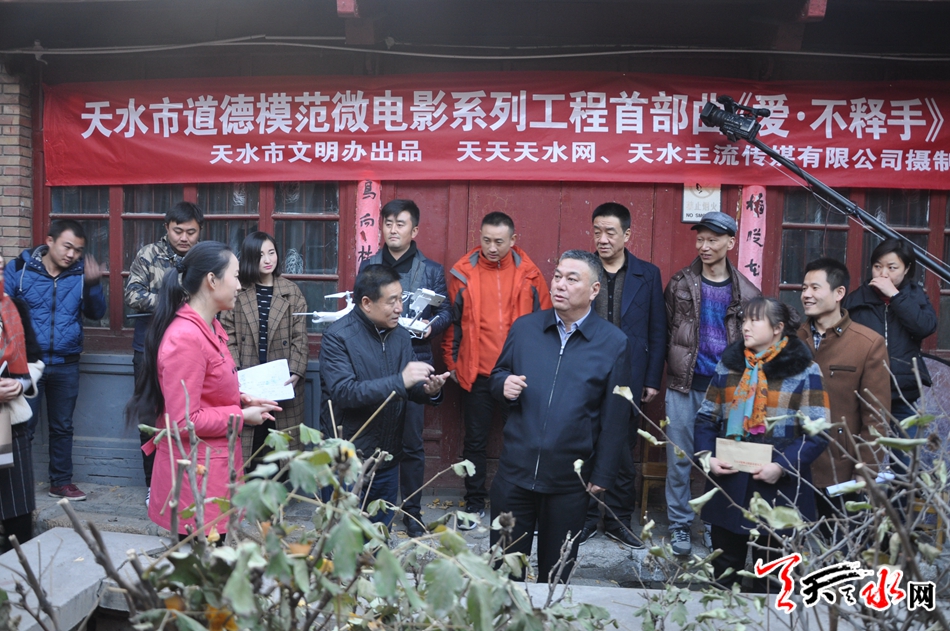 据了解,《爱▪不释手》是天水市道德模范系列微电影工程的开篇之作,由天水市文明办出品,天天天水网、天水主流传媒有限公司摄制。剧本以朱召梅不计前嫌,在离婚后坚持照顾前夫的事迹为影片主线,全片贴近百姓生活实际,在小题材中折射我市精神文明建设以及残疾人帮扶事业的发展印迹。该片旨在传递正能量,向为天水社会和谐稳定作出突出贡献的历届道德模范和“最美天水人”们致敬。