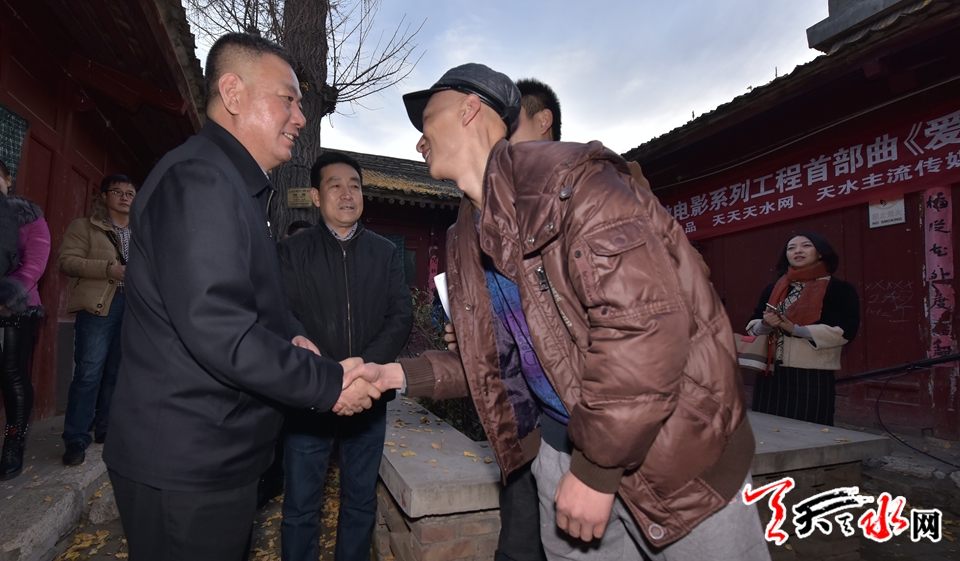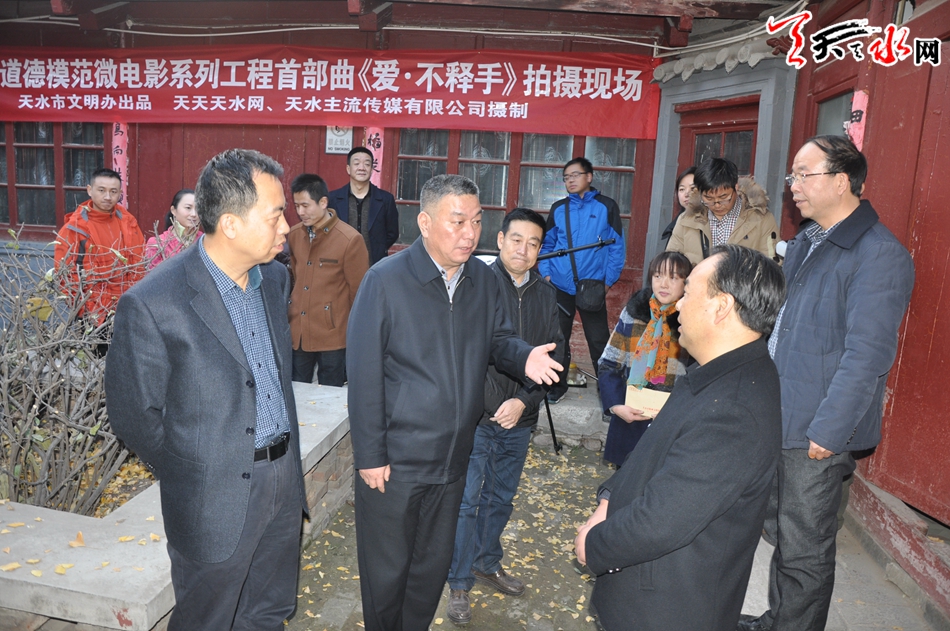 天天天水网讯【记者杨璟 周文涛 何永德】11月29日下午,天水市委常委、宣传部长蒲军到秦州区文化馆看望慰问正在拍摄微电影《爱▪不释手》的剧组演职人员。