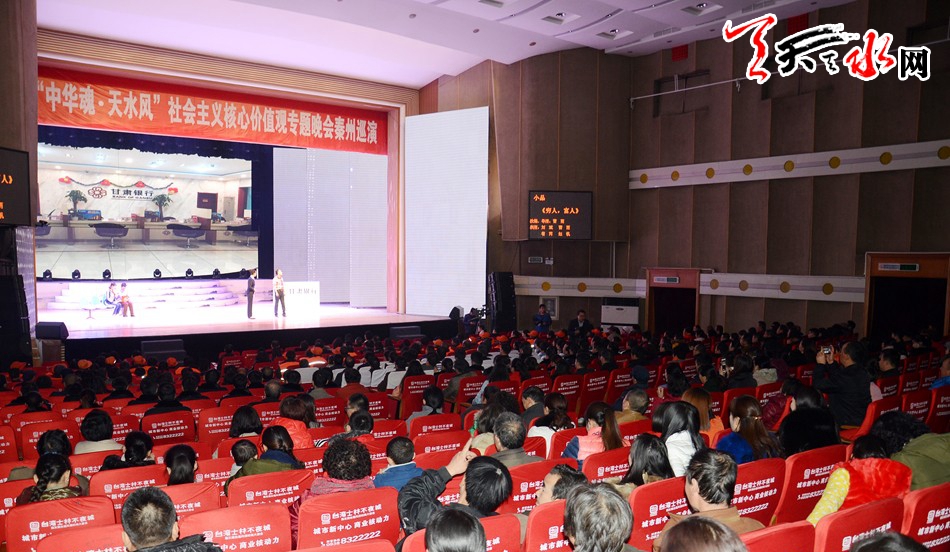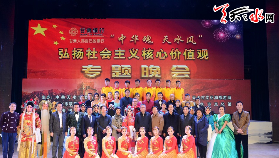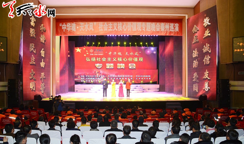 “中华魂·天水风” —弘扬社会主义核心价值观专题晚会围绕“弘扬社会主义核心价值观”这一主题,通过舞蹈、演唱、小品、相声等丰富多彩的节目,用群众喜闻乐见的形式弘扬社会主义核心价值观的内涵,表达天水儿女践行社会主义核心价值观、全力建设“富裕、文明、美丽、和谐”新天水的信心和决心。晚会自2016年初演以来得到社会各界的一致好评,在全市范围内营造了良好的舆论氛围。
