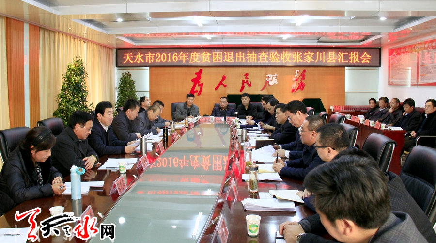 县四大组织主要领导和分管领导及15个乡镇党委书记参加了天水市2016年度贫困退出抽查验收张家川汇报会。