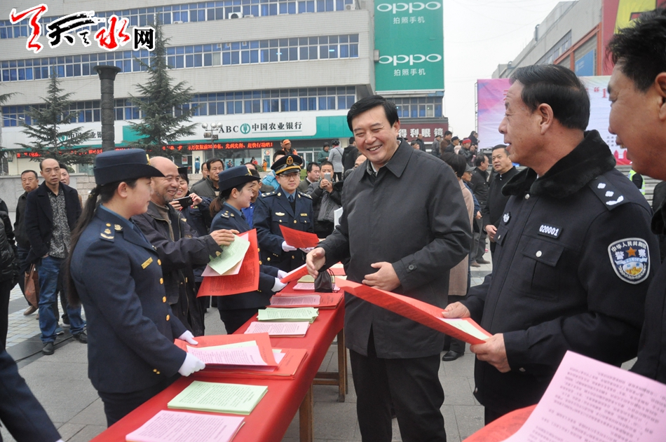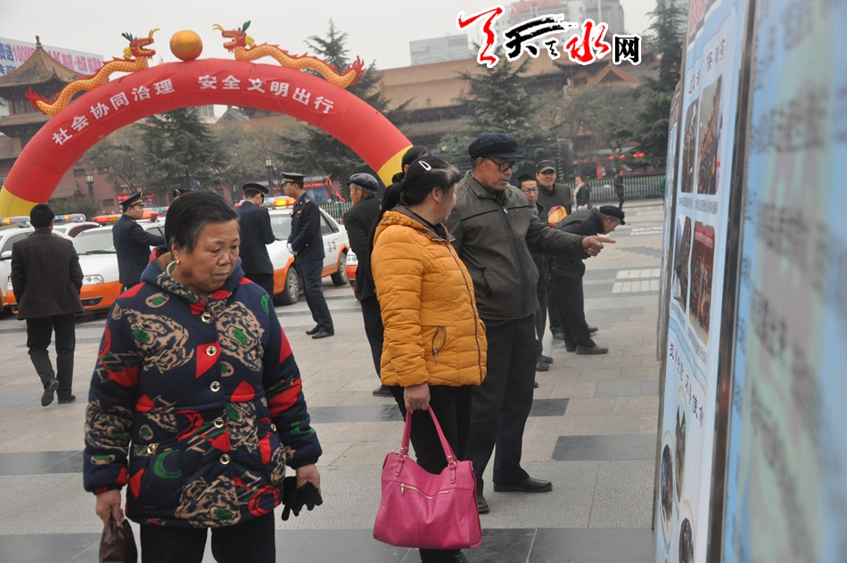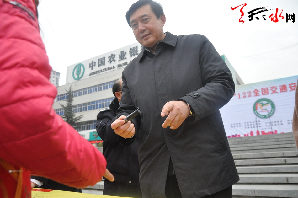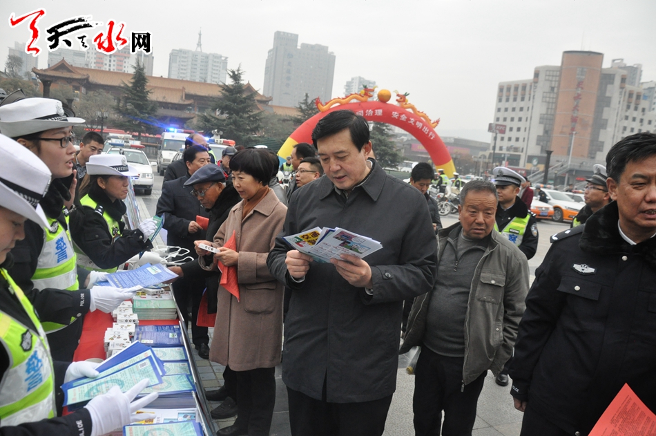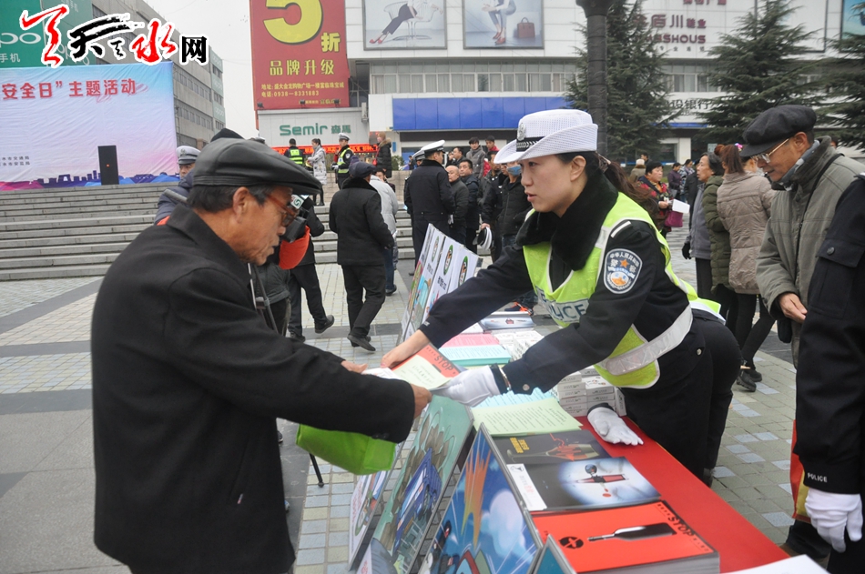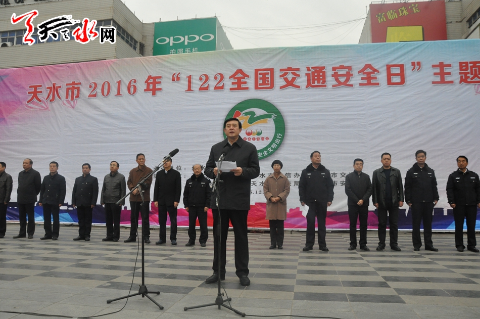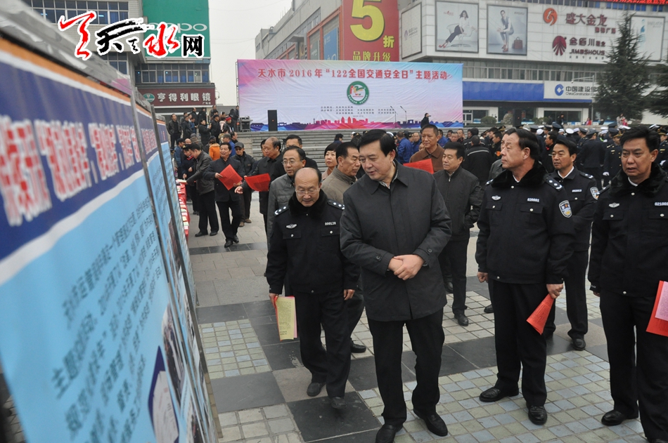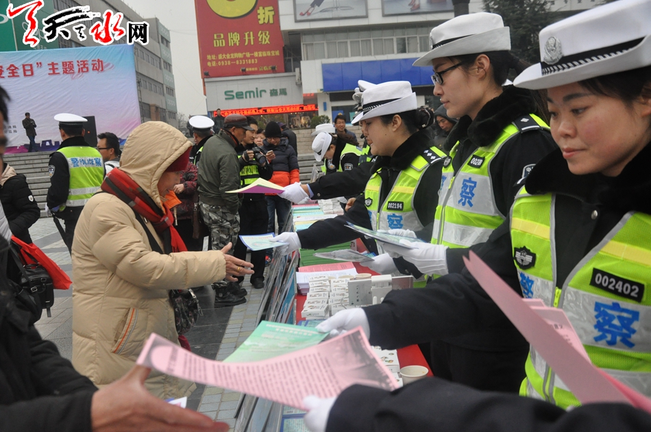 天天天水网讯【记者刘晓亚 通讯员王志成】12月2日,在第五个“全国交通安全日”到来之际,为进一步增强交通参与者的法治意识、安全意识和文明意识,积极营造全社会共同关注交通安全的浓厚氛围。由天水市公安局主办,市文明办、市网信办、市交通局、市教育局、市司法局、市安监局协办的天水市2016年122“全国交通安全日”主题活动在秦州区龙城广场举行,今年活动的主题是“社会协同治理,安全文明出行”