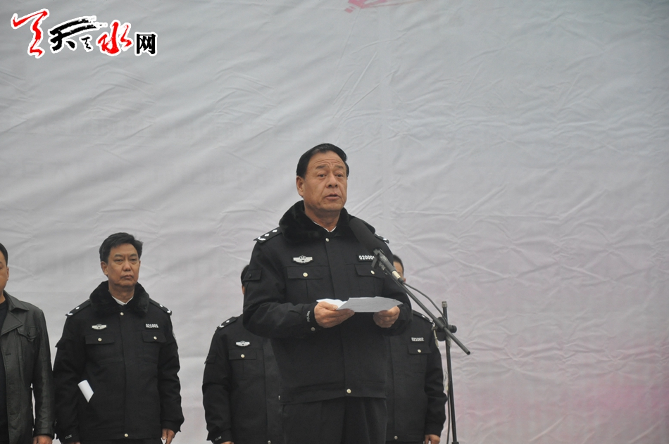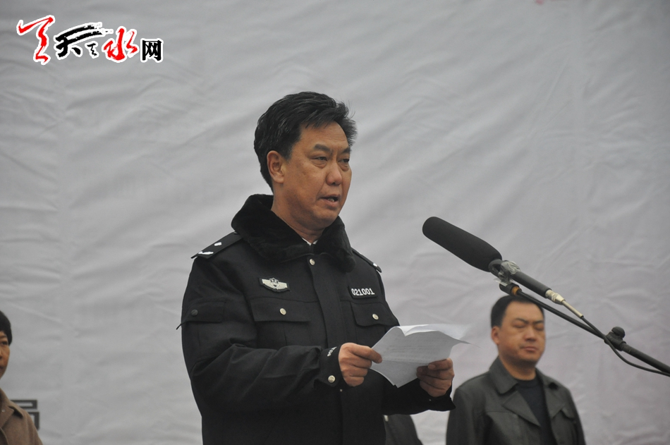 ▲天水市政府党组成员、市公安局党委书记、局长黄金奎主持
