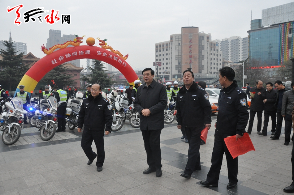 甘肃省公安厅交管局政委刘琪基,天水市市委常委、常务副市长赵卫东,天水市人大常委会副主任王晓琴,天水市政协副主席马百龄,天水市政府党组成员、市公安局党委书记、局长黄金奎,以及市公安局、市文明办、市网信办、市交通局、市教育局、市安监局、市司法局、省高速交警四支队、市运管局、市公安局交警支队等部门负责人及社会各界人士300余人参加活动。