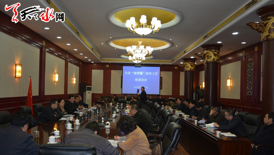 天天天水网讯【记者杨璟】12月1日,天水市委常委、常务副市长赵卫东主持召开全市“放管服”改革工作推进会,交办“放管服”改革存在的问题,安排部署当前和今后一个时期“放管服”改革工作。