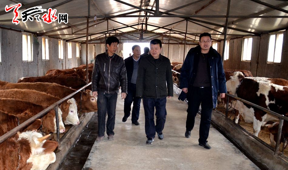 ▲在秦州区牡丹镇马家堡村开源养殖农民专业合作社调研